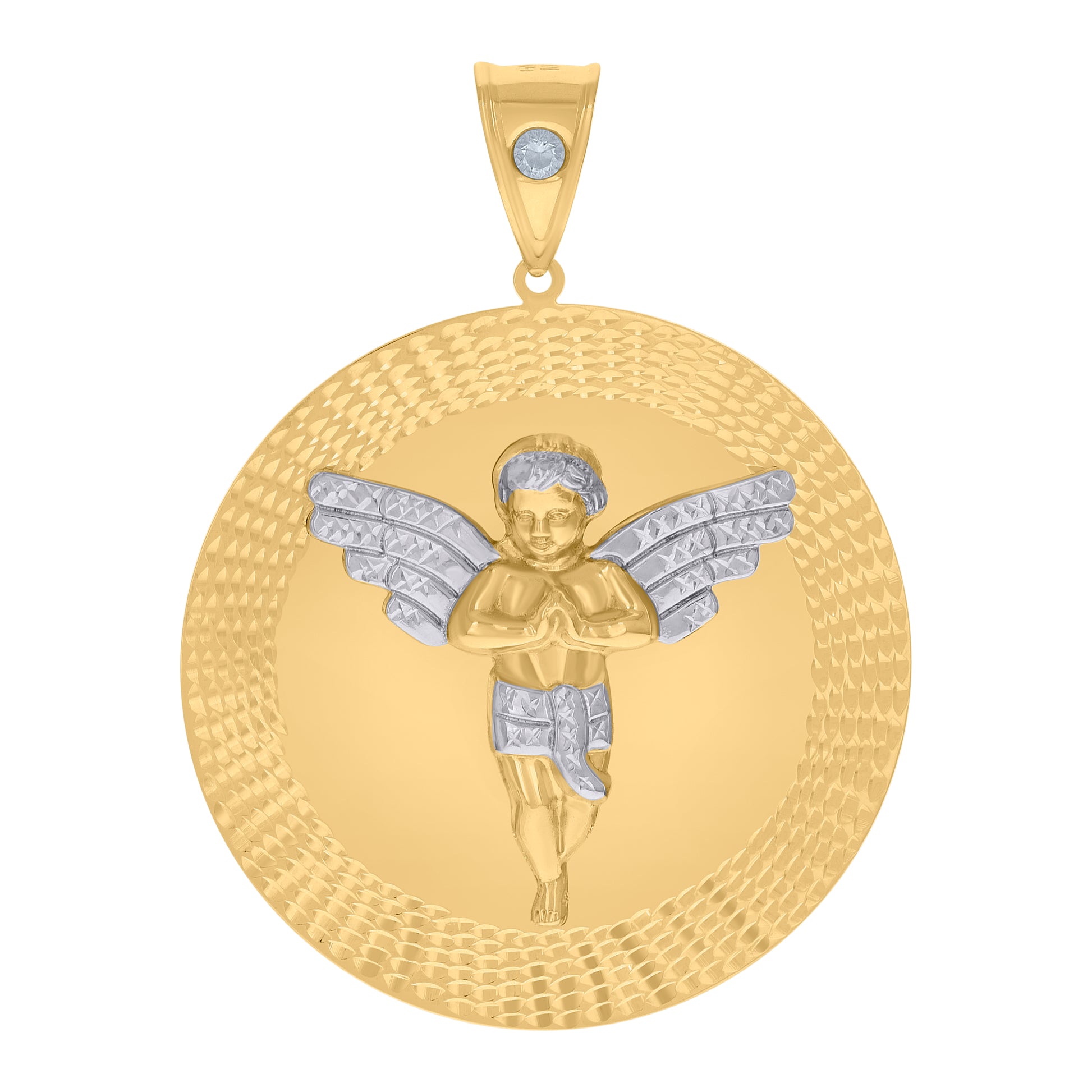 10kt Two-tone Gold Mens Cubic-Zirconia Medallion Angel Religious Charm Pendant