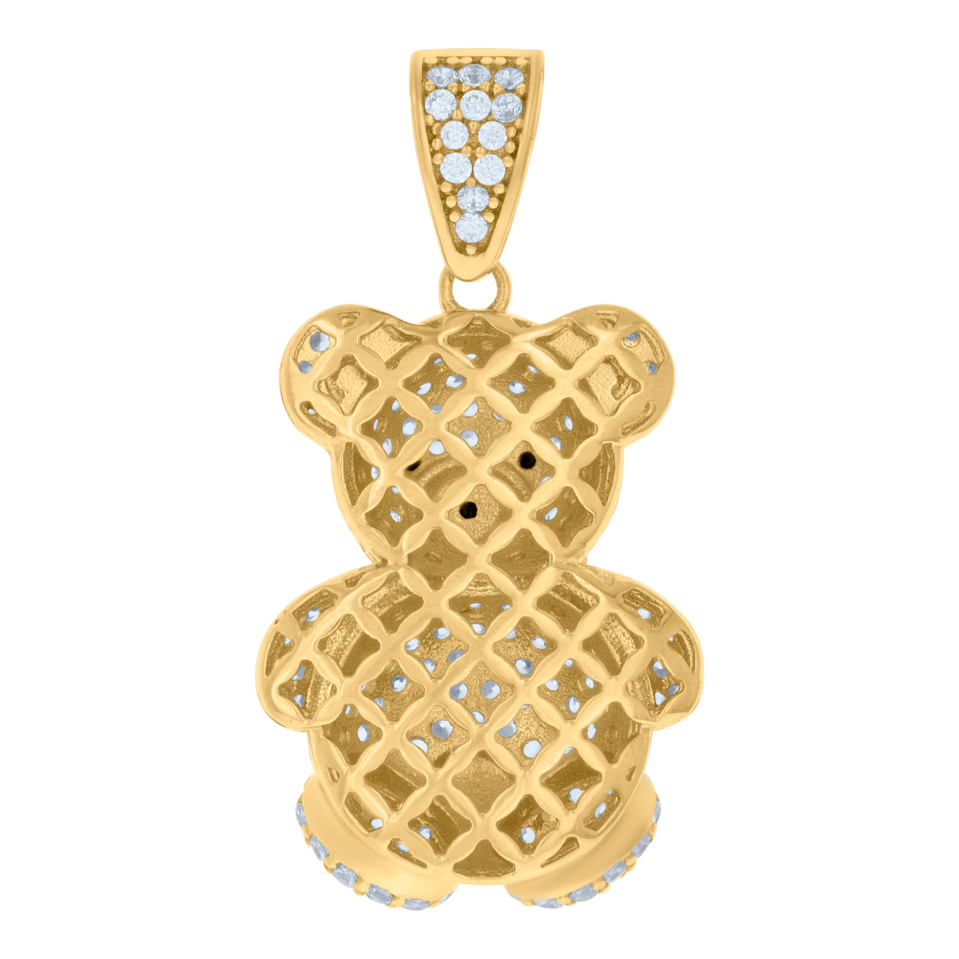 10kt Yellow Gold Mens Black White Cubic-Zirconia Teddy Bear Charm Pendant