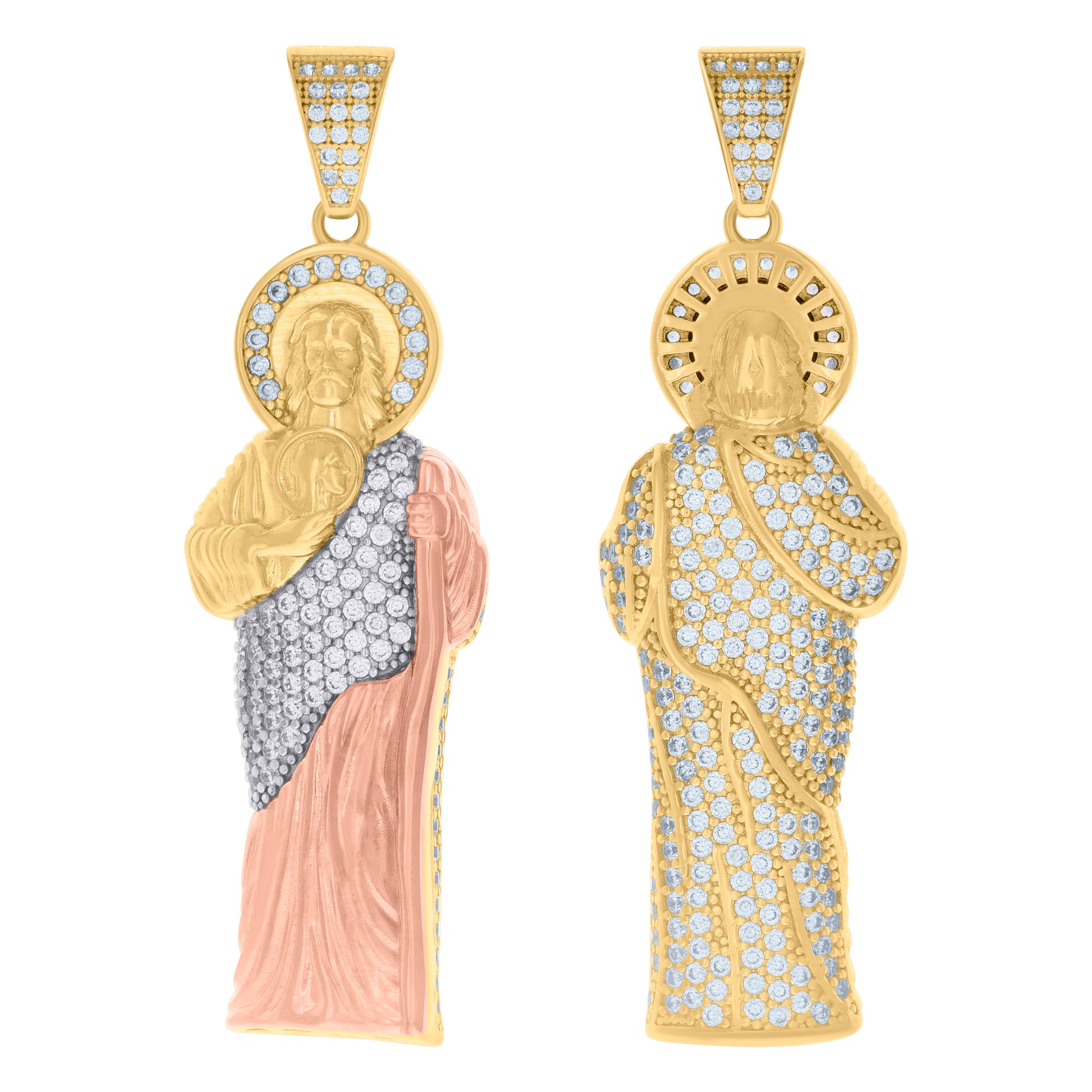 10kt Tri-Color Gold Mens Cubic-Zirconia Saint Jude Religious Charm Pendant