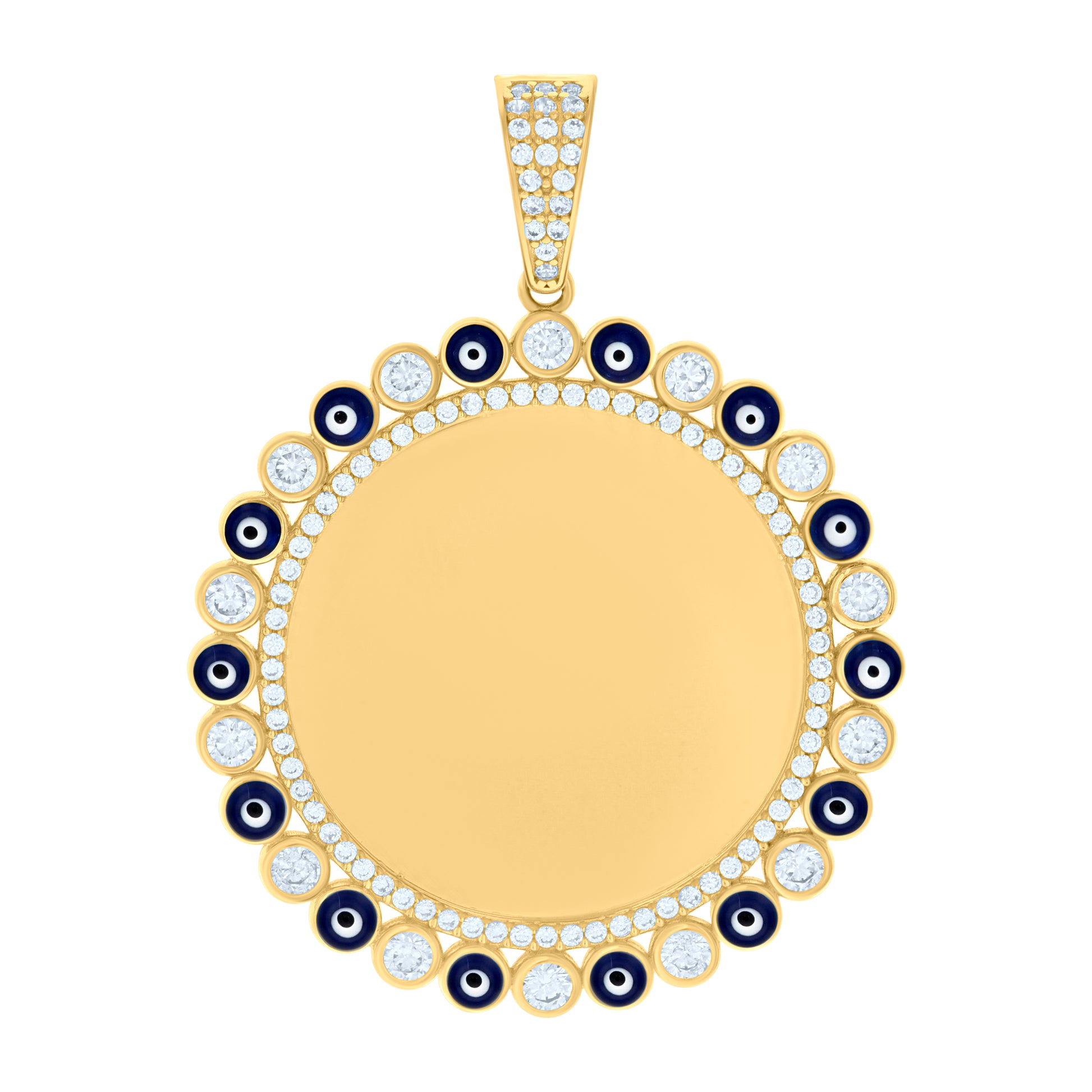 10kt Yellow Gold Mens Cubic-Zirconia Enamel Evil Eye Photo Frame Charm Pendant