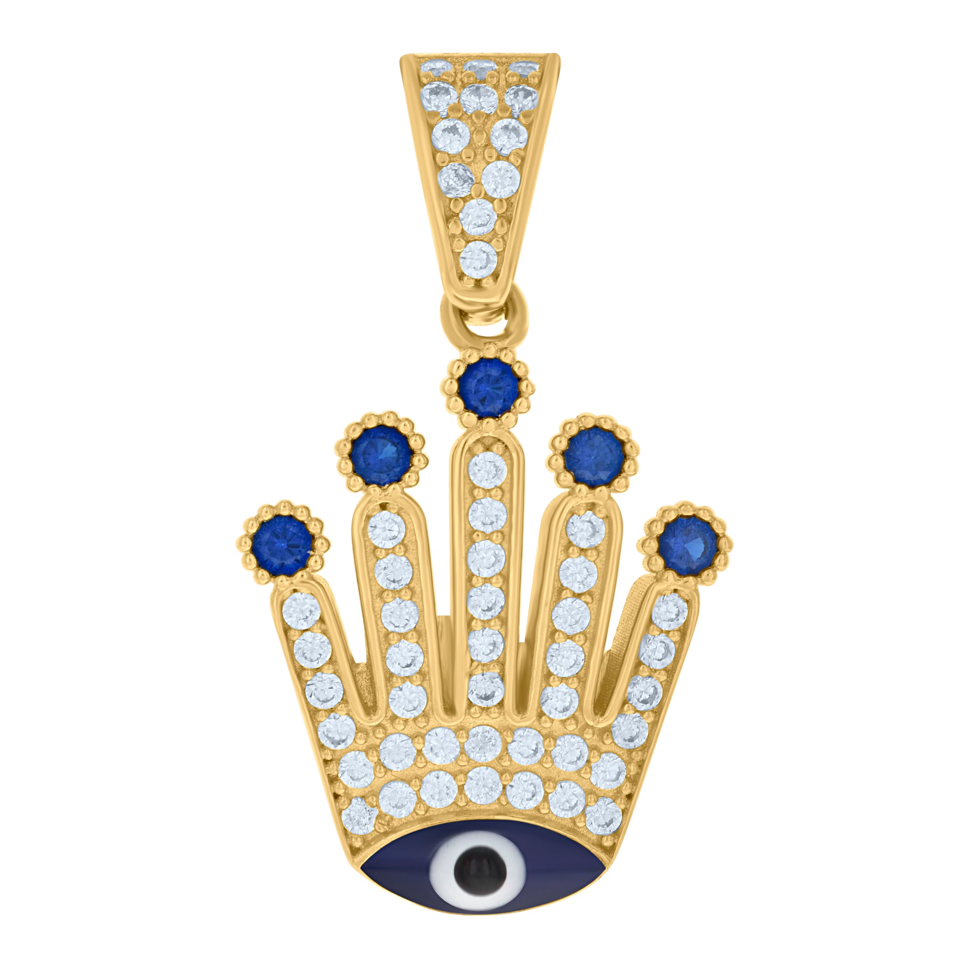 10kt Yellow Gold Womens Blue White Cubic-Zirconia Enamel Crown Evil Eye Good Luck Charm Pendant