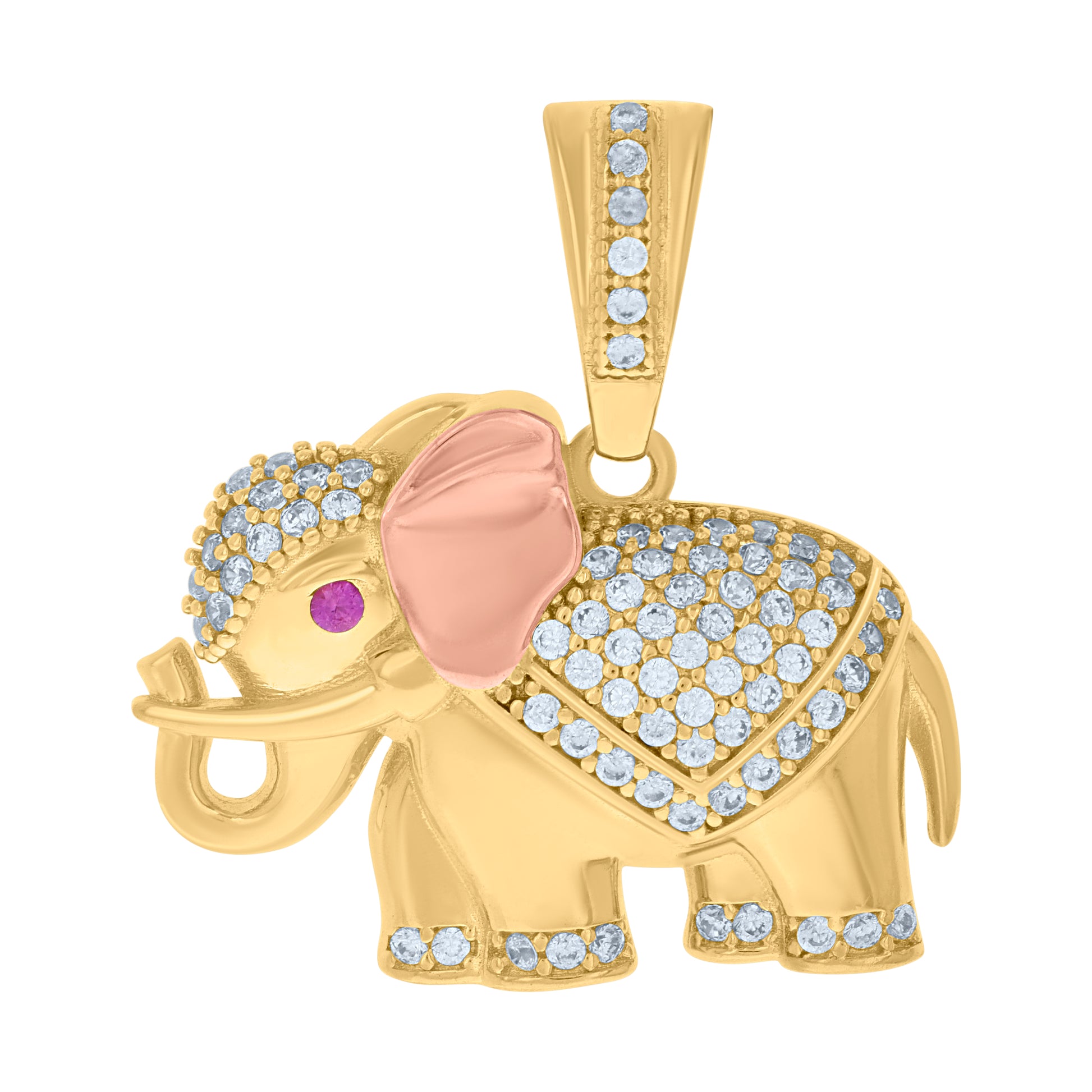 10kt Two-tone Gold Unisex Purple White Cubic-Zirconia Elephant Animal Wildlife Charm Pendant