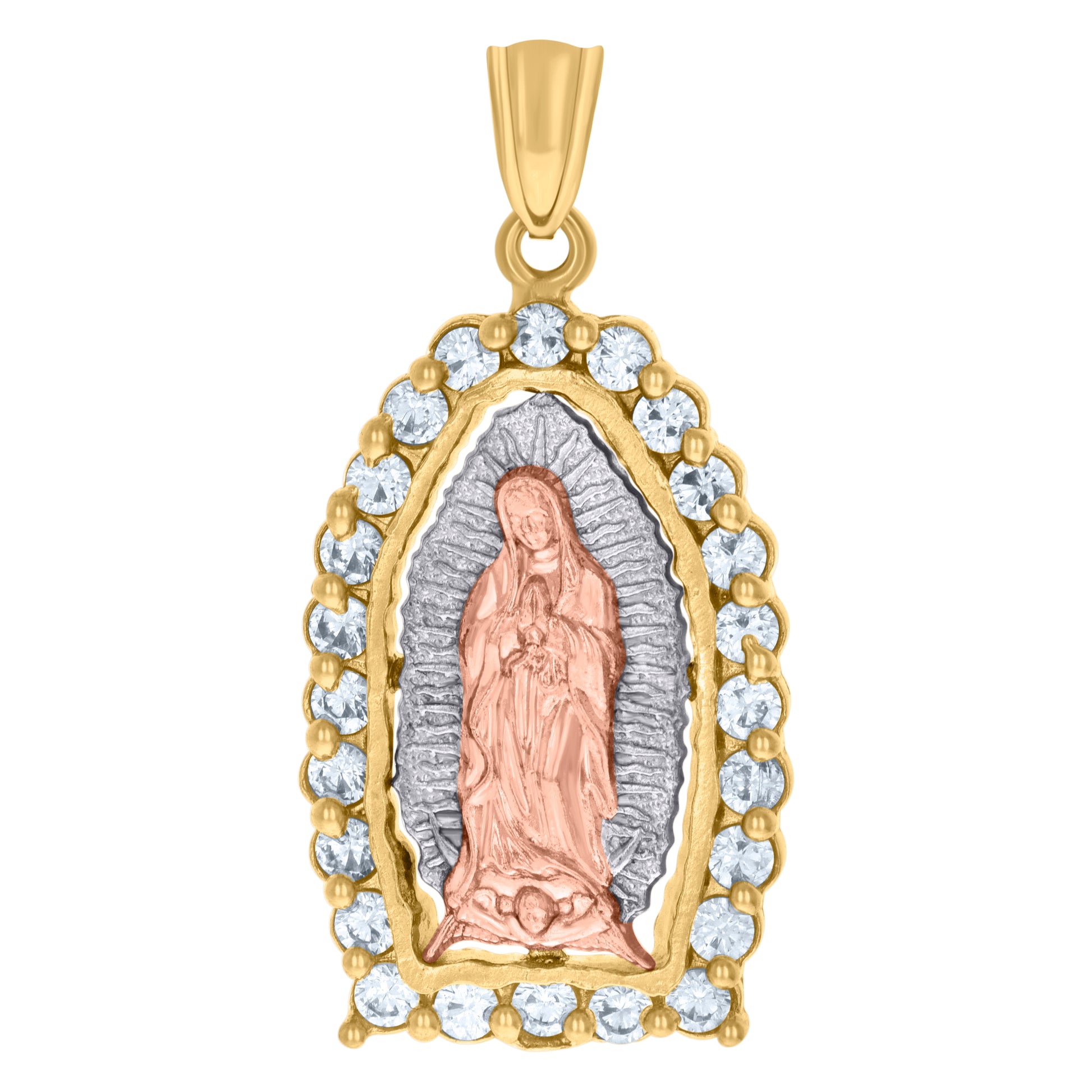 10kt Tri-Color Gold Womens Cubic-Zirconia Guadalupe Religious Charm Pendant