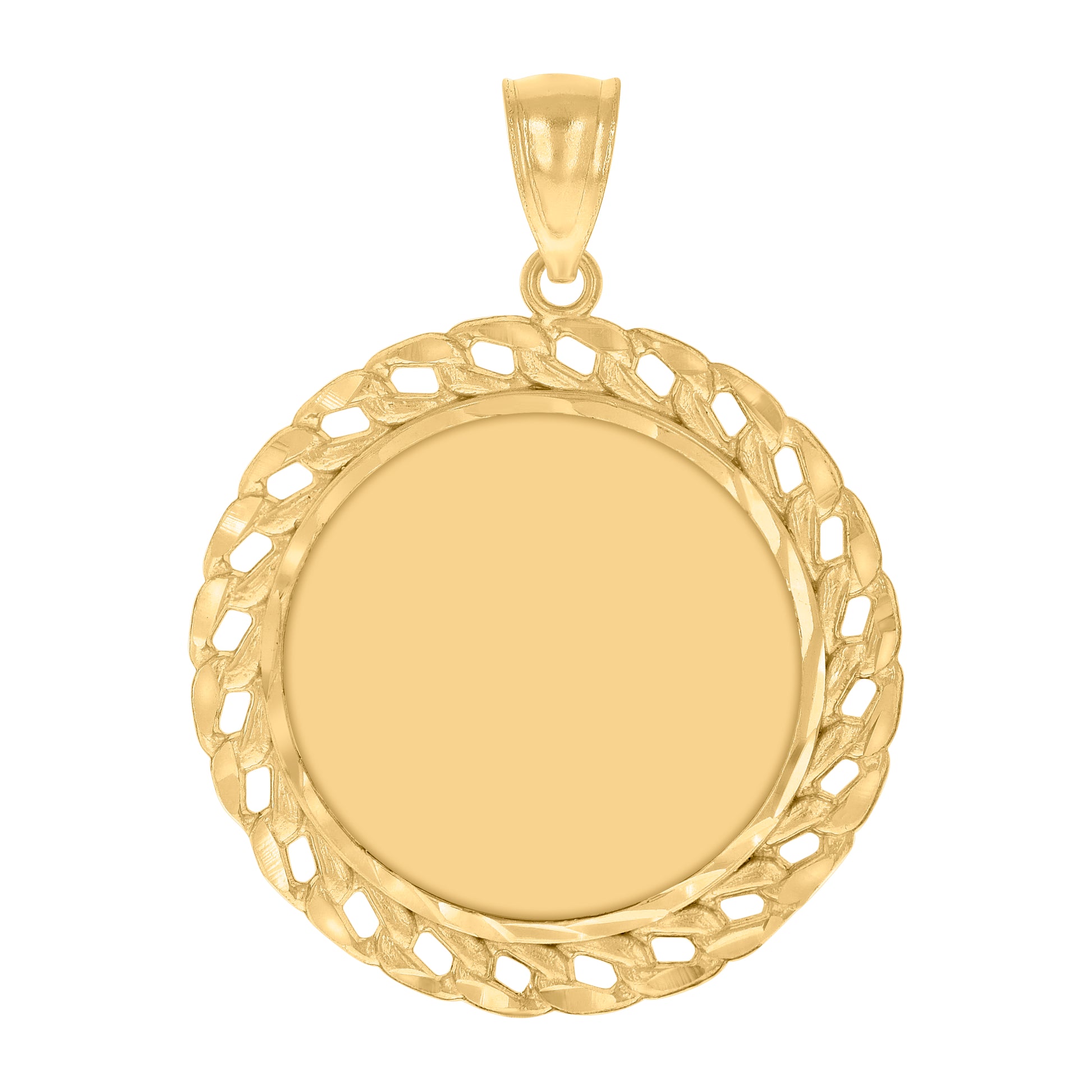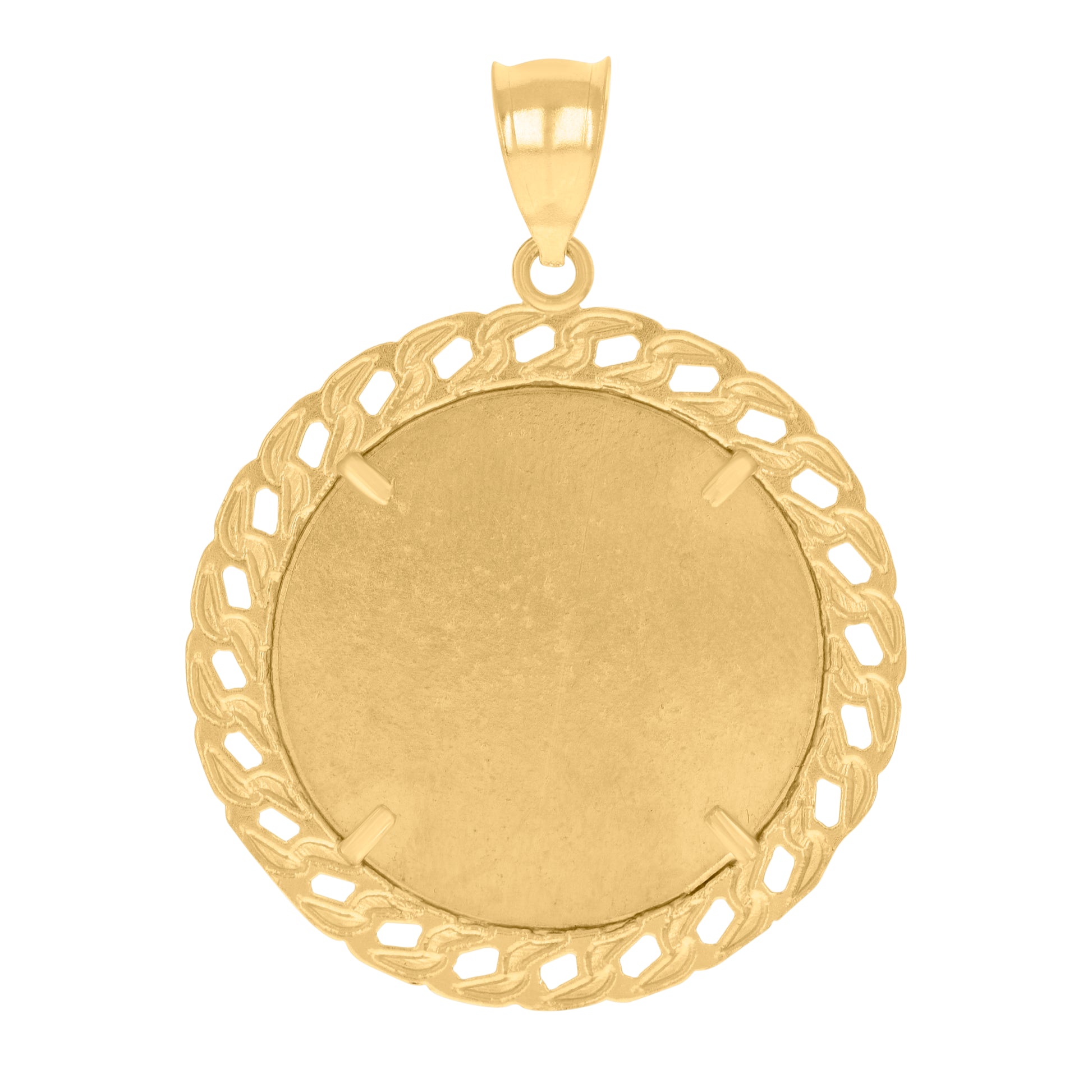 10kt Yellow Gold Mens Cuban Photo Frame Charm Pendant