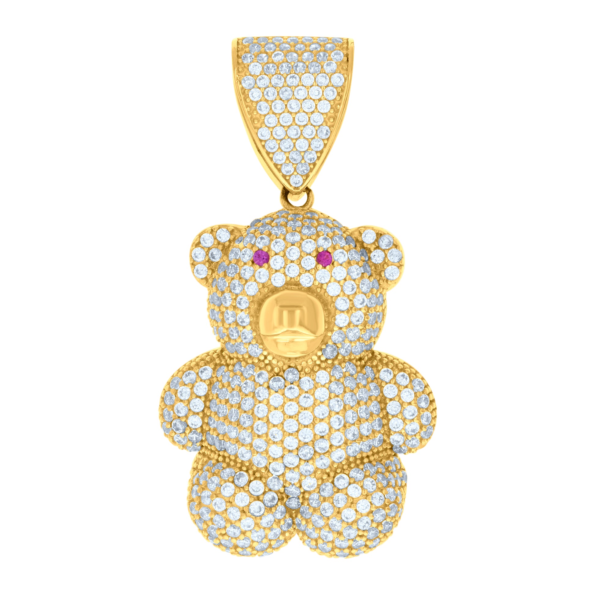 10kt Yellow Gold Unisex Pink White Cubic-Zirconia Teddy Bear Charm Pendant