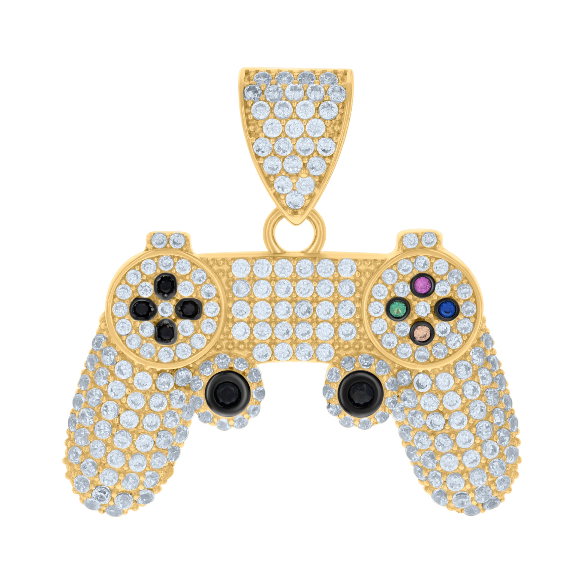 10kt Yellow Gold Black-tone Mens Multi-color Cubic-Zirconia Gaming Console Fashion Charm Pendant