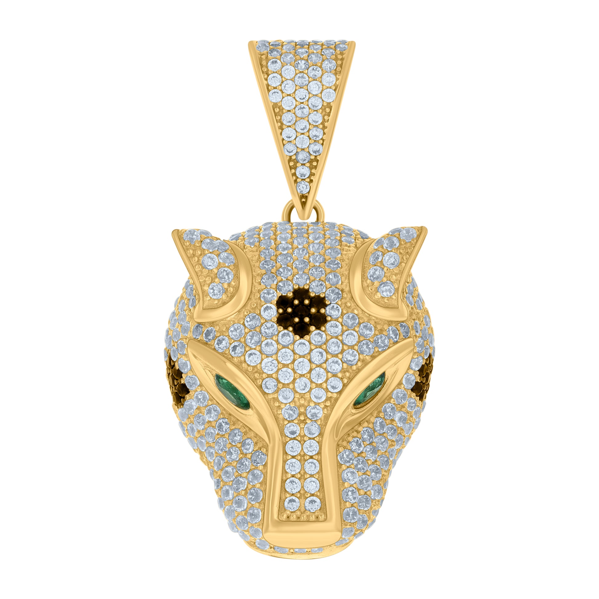 10kt Yellow Gold Mens Green/Black White Cubic-Zirconia Panther Head Animal Wildlife Charm Pendant