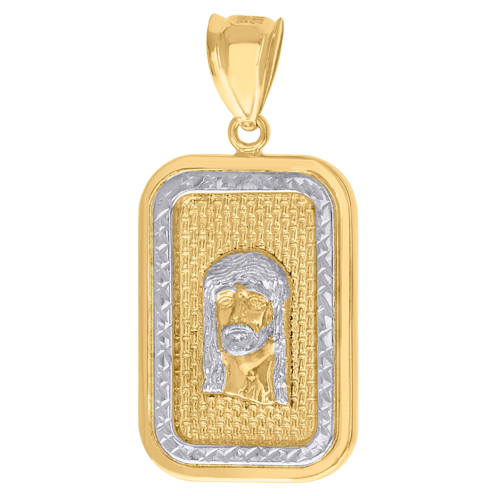 10kt Two-Tone Gold Mens Textured Jesus Religious Charm Pendant