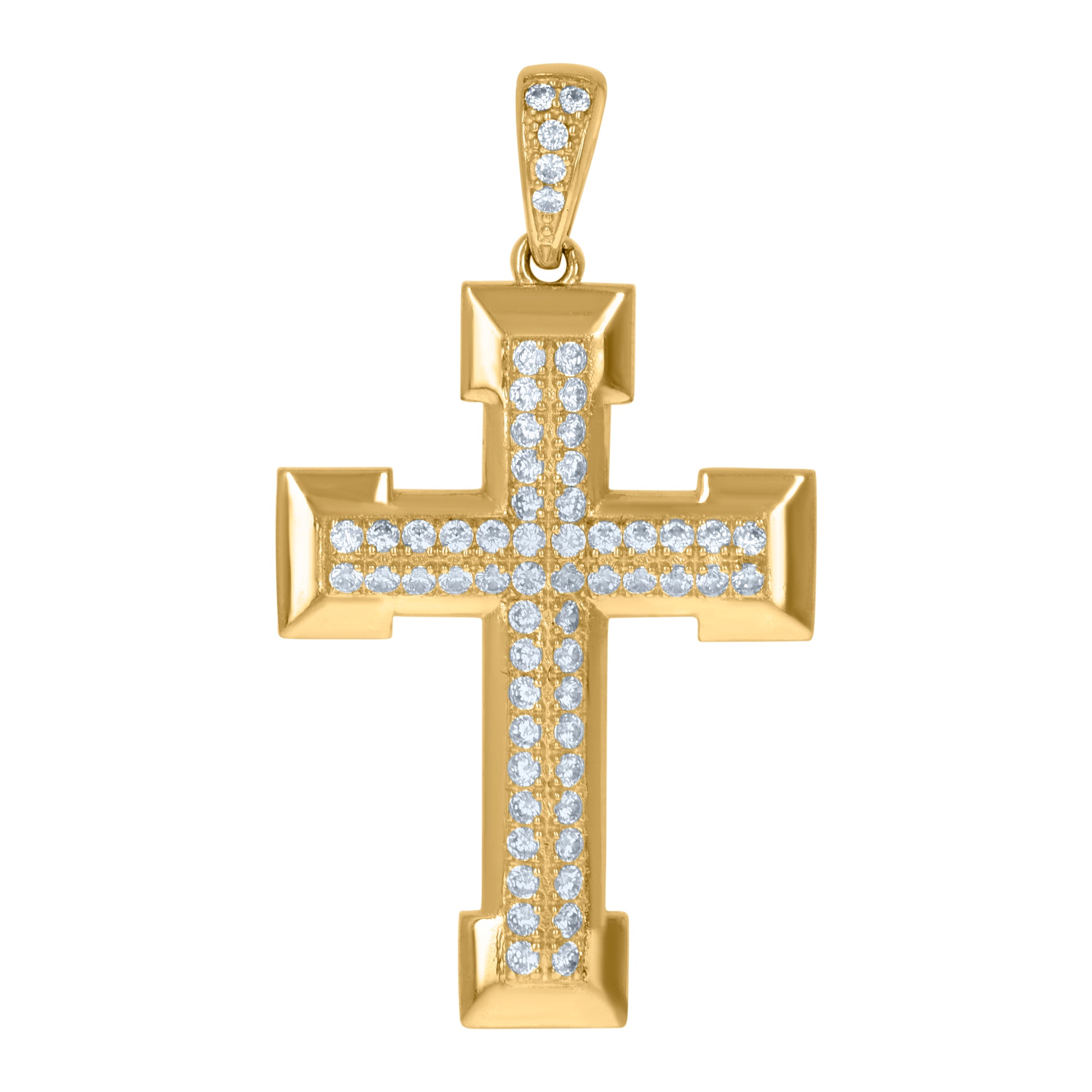 10kt Yellow Gold Mens Cubic-Zirconia Cross Religious Charm Pendant