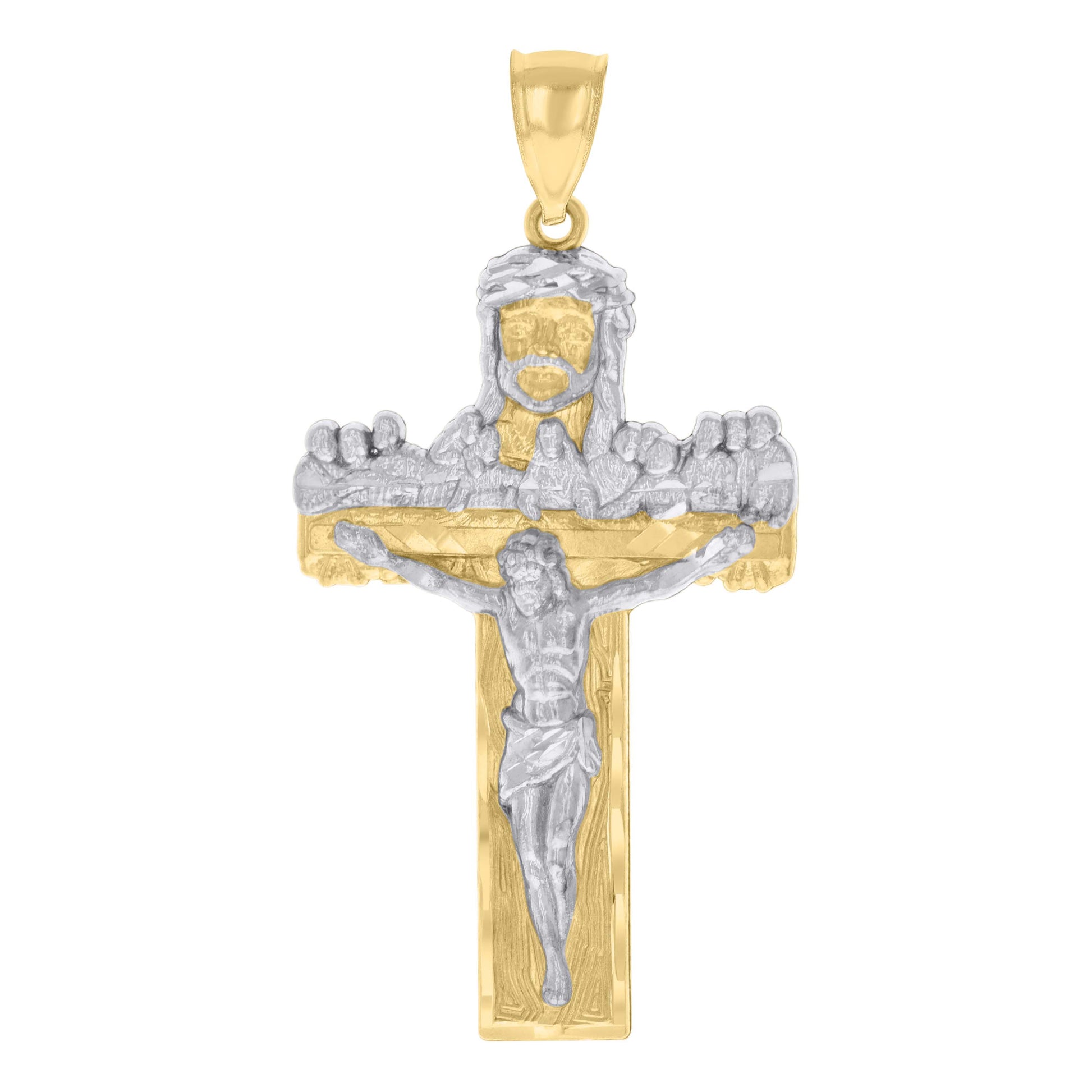 10kt Two-tone Gold Mens Jesus Last Supper Crucifix Cross Religious Charm Pendant