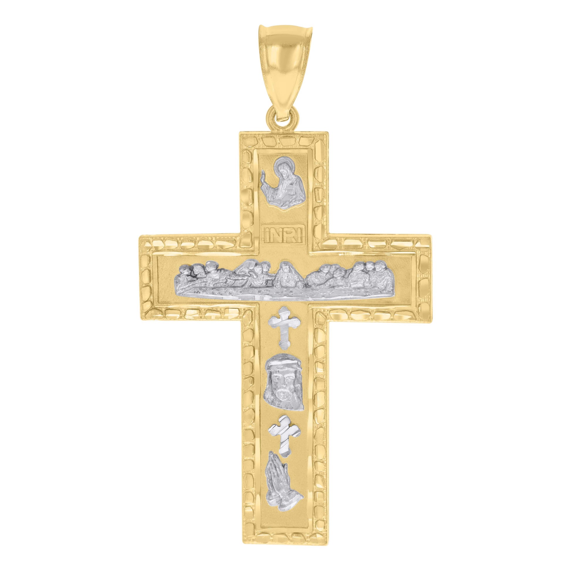 10kt Two-tone Gold Mens Jesus Last Supper INRI Cross Religious Charm Pendant