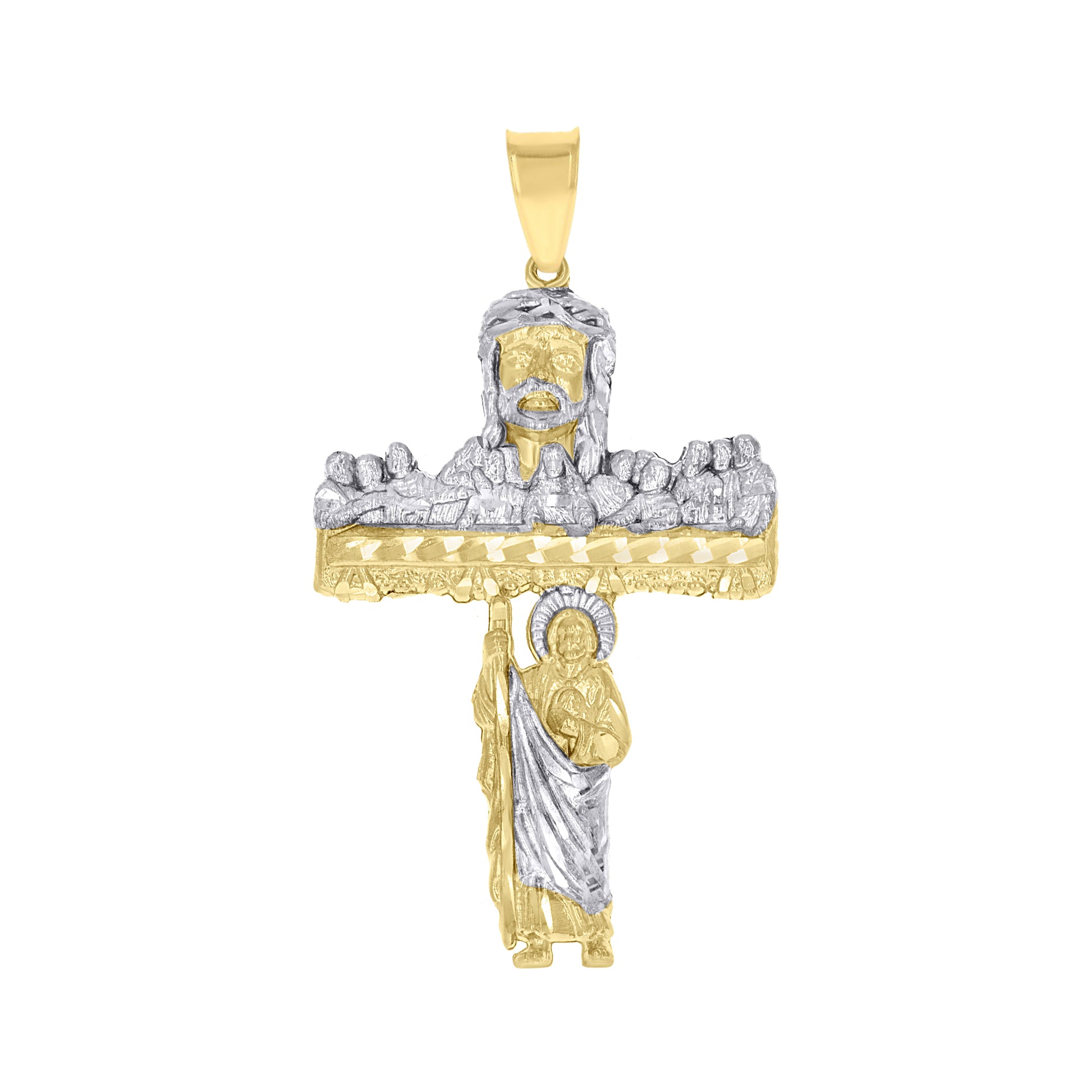 10kt Two-tone Gold Mens Jesus Last Supper Crucifix Cross Religious Charm Pendant