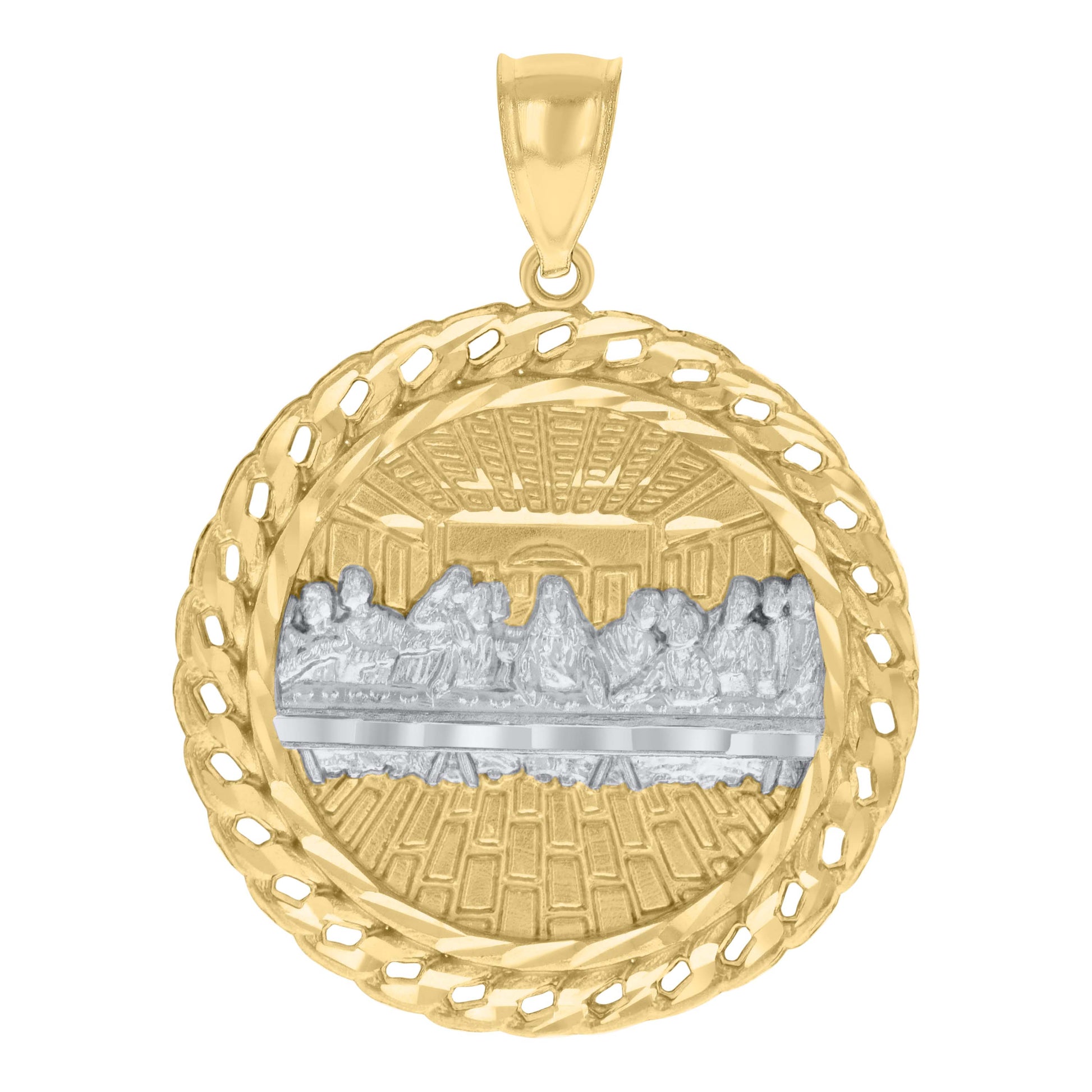 10kt Two-tone Gold Mens Chain Border Last Supper Religious Charm Pendant