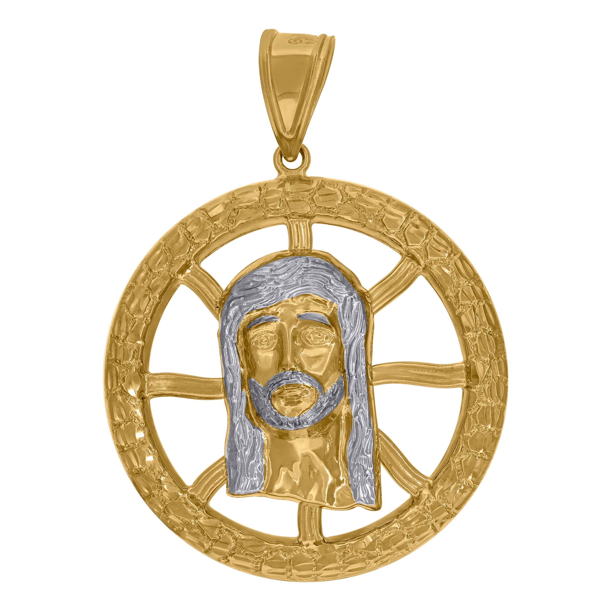 10kt Two-Tone Gold Mens Religious Jesus Medallion Pendant