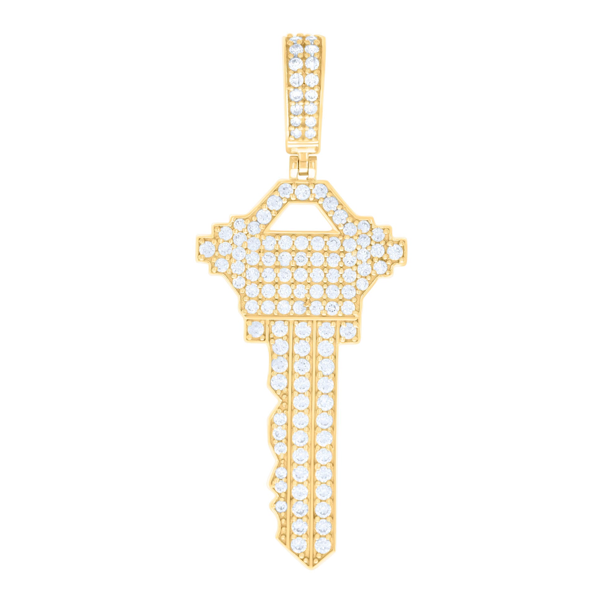 10kt Yellow Gold Mens Cubic-Zirconia Key Lock & Key Charm Pendant
