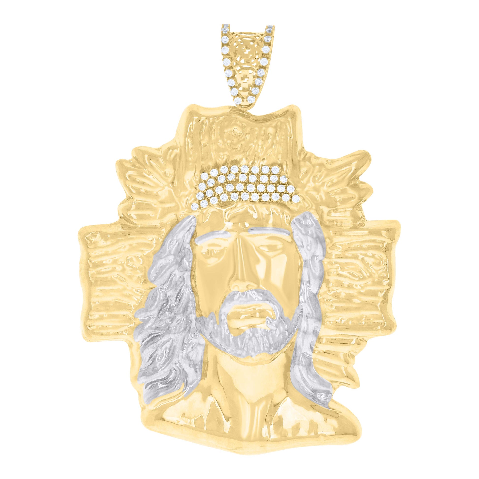10kt Two-tone Gold Mens Cubic-Zirconia Jesus Religious Charm Pendant