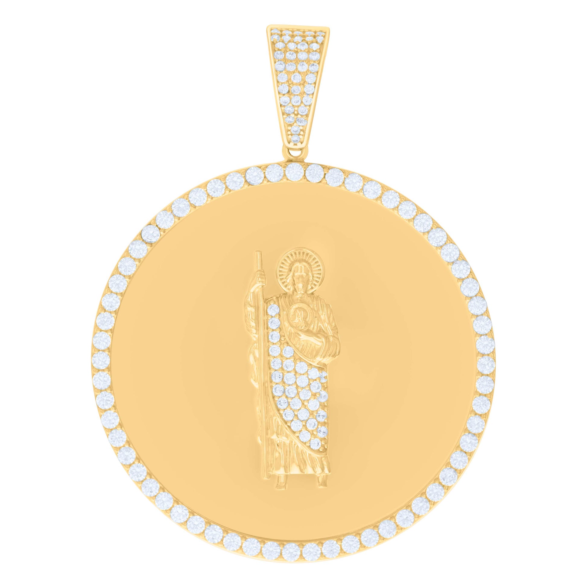 10kt Yellow Gold Mens Cubic-Zirconia St. Jude Religious Charm Pendant