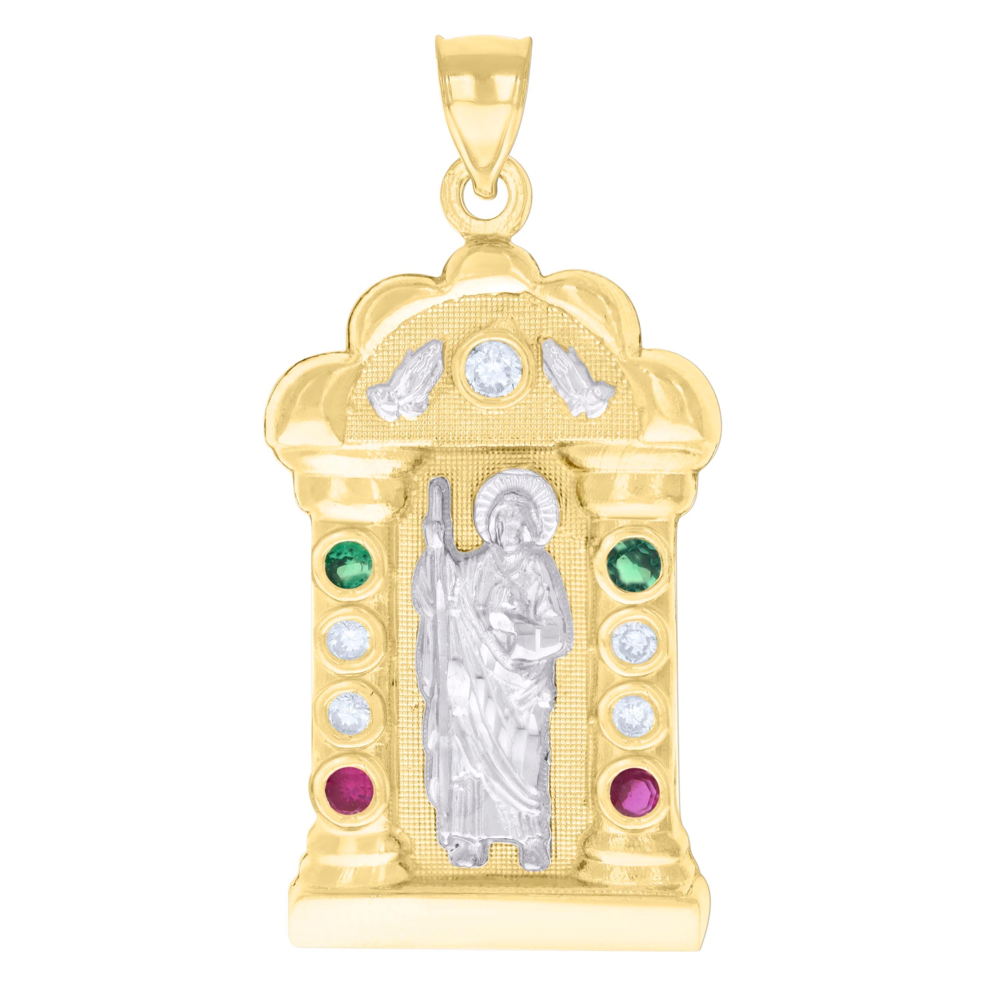 10kt Two-tone Gold Mens Green/Purple White Cubic-Zirconia St. Jude Religious Charm Pendant