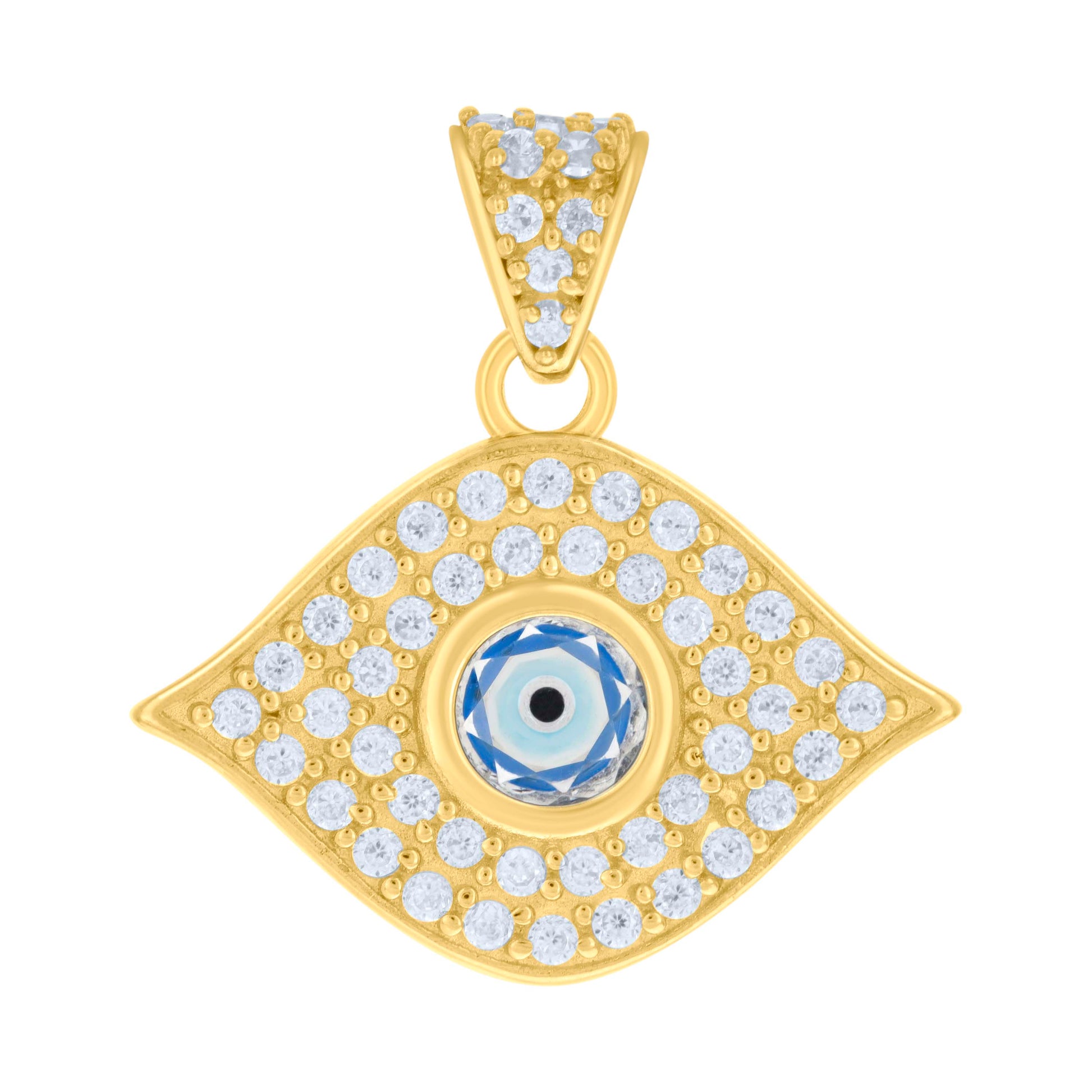 10kt Yellow Gold Unisex Cubic-Zirconia Enameled Evil Eye Good Luck Charm Pendant
