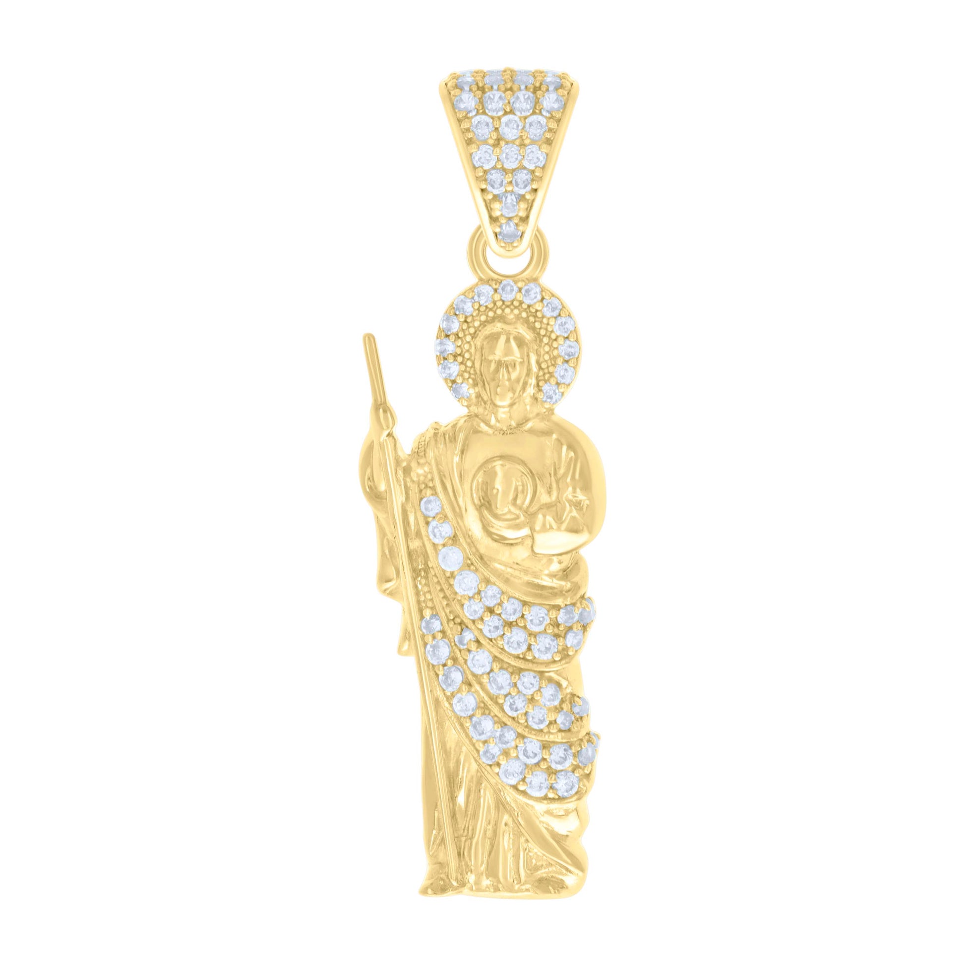 10kt Yellow Gold Mens Cubic-Zirconia St. Jude Religious Charm Pendant