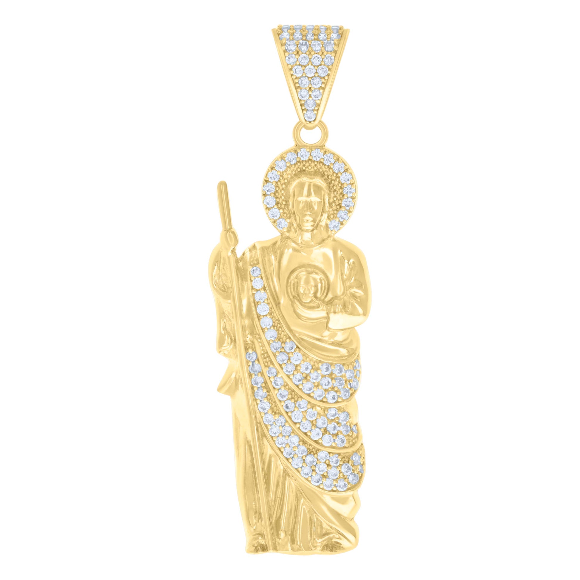 10kt Yellow Gold Mens Cubic-Zirconia St. Jude Religious Charm Pendant