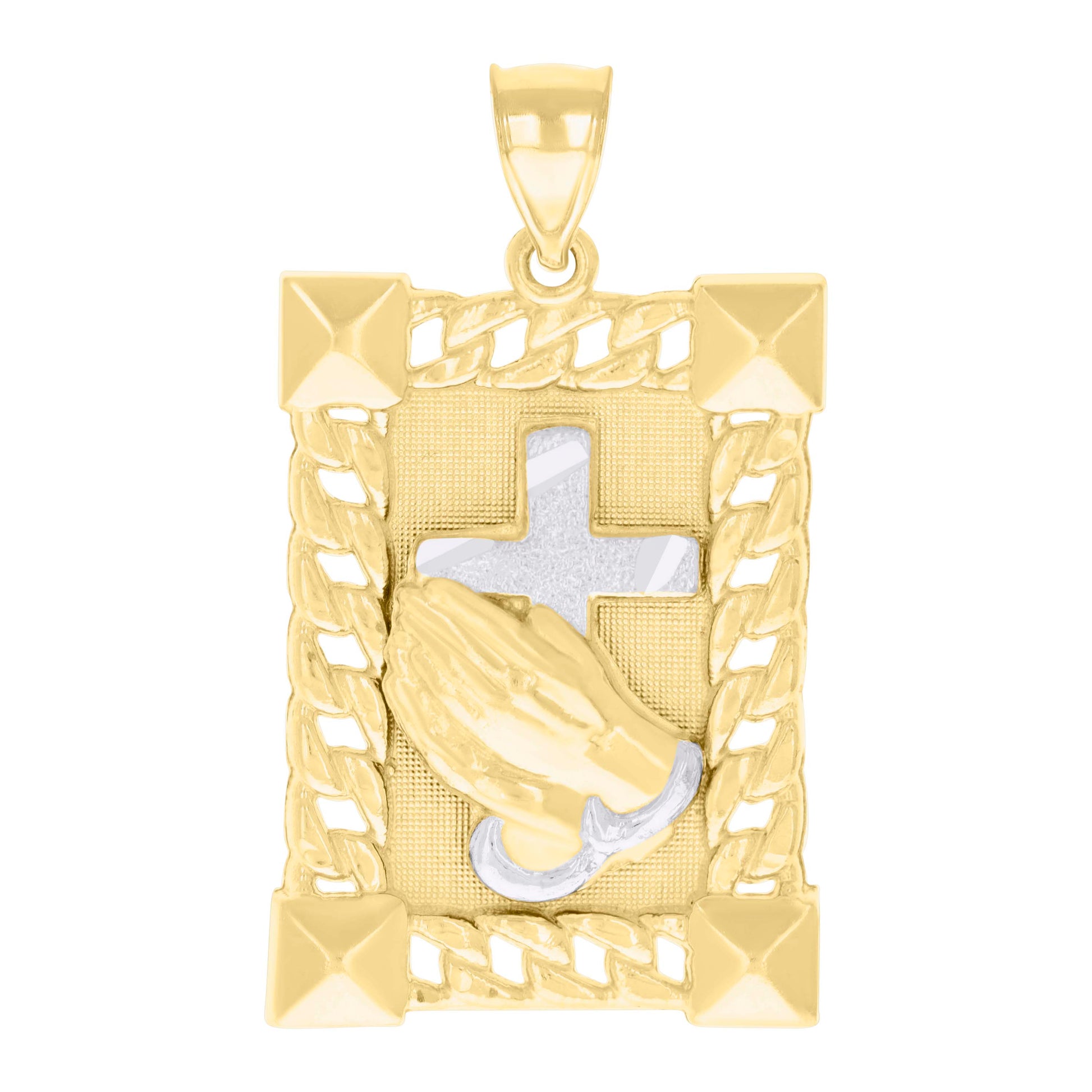 10kt Two-tone Gold Mens Praying Hands Symbol Religious Charm Pendant
