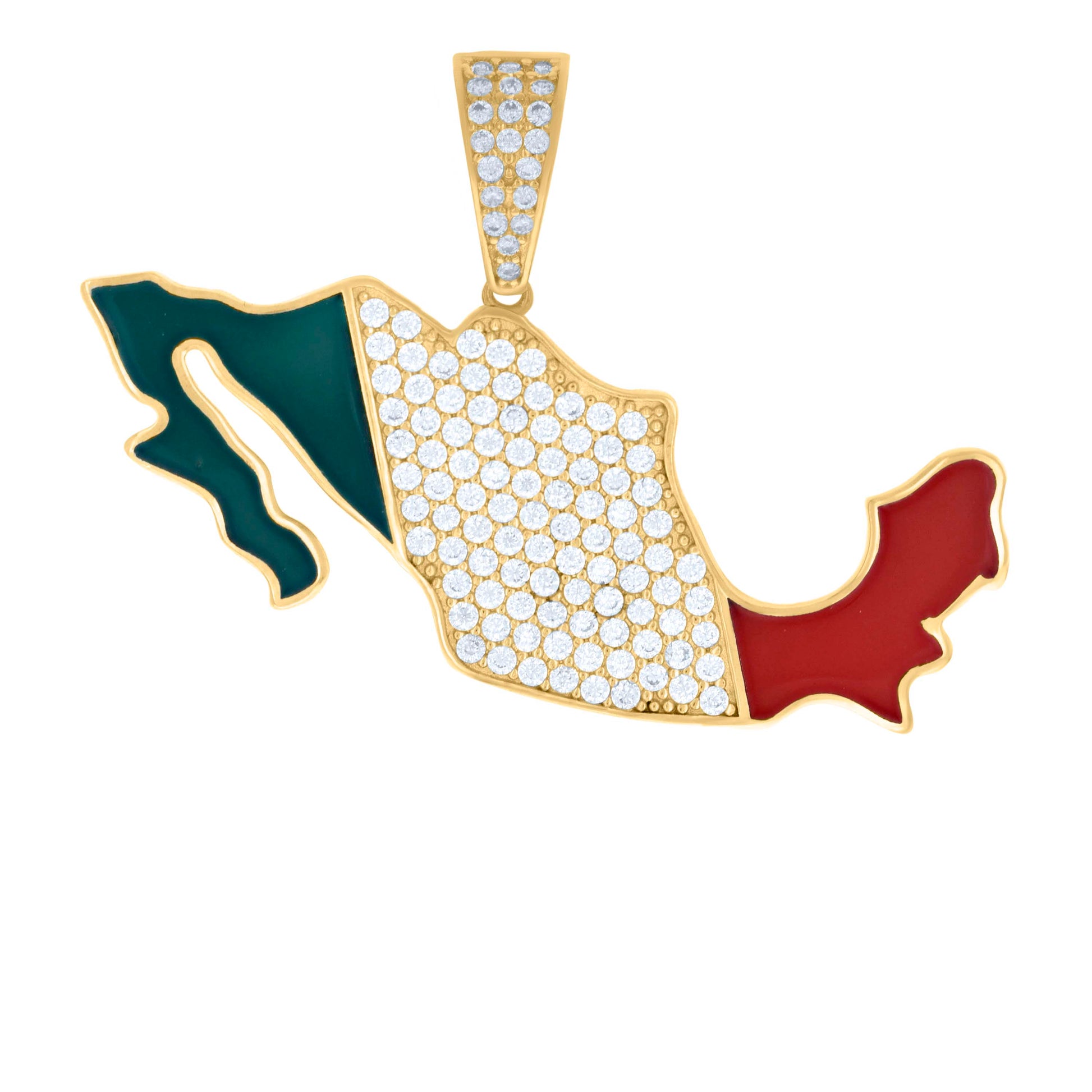 10kt Yellow Gold Mens Cubic-Zirconia Enameled Mexico Map Country Charm Pendant
