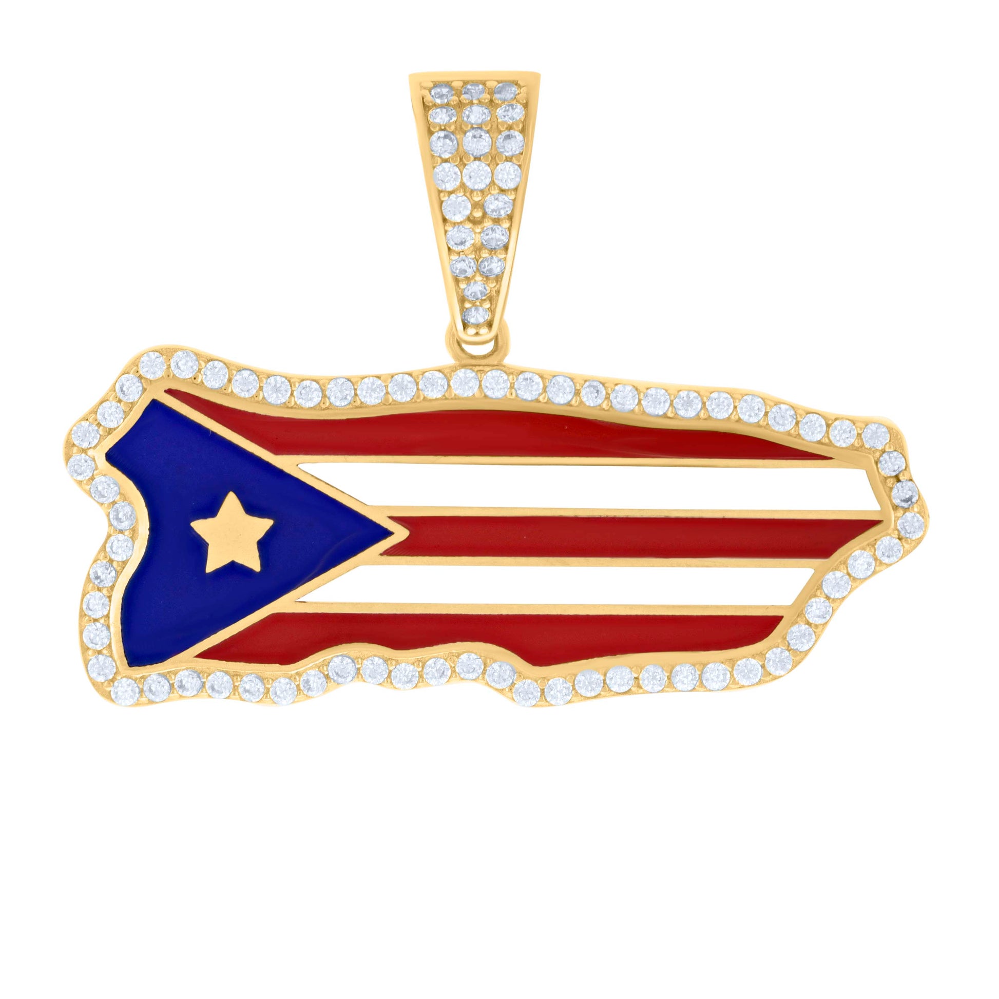 10kt Yellow Gold Mens Cubic-Zirconia Enameled Puerto Rico Flag Charm Pendant