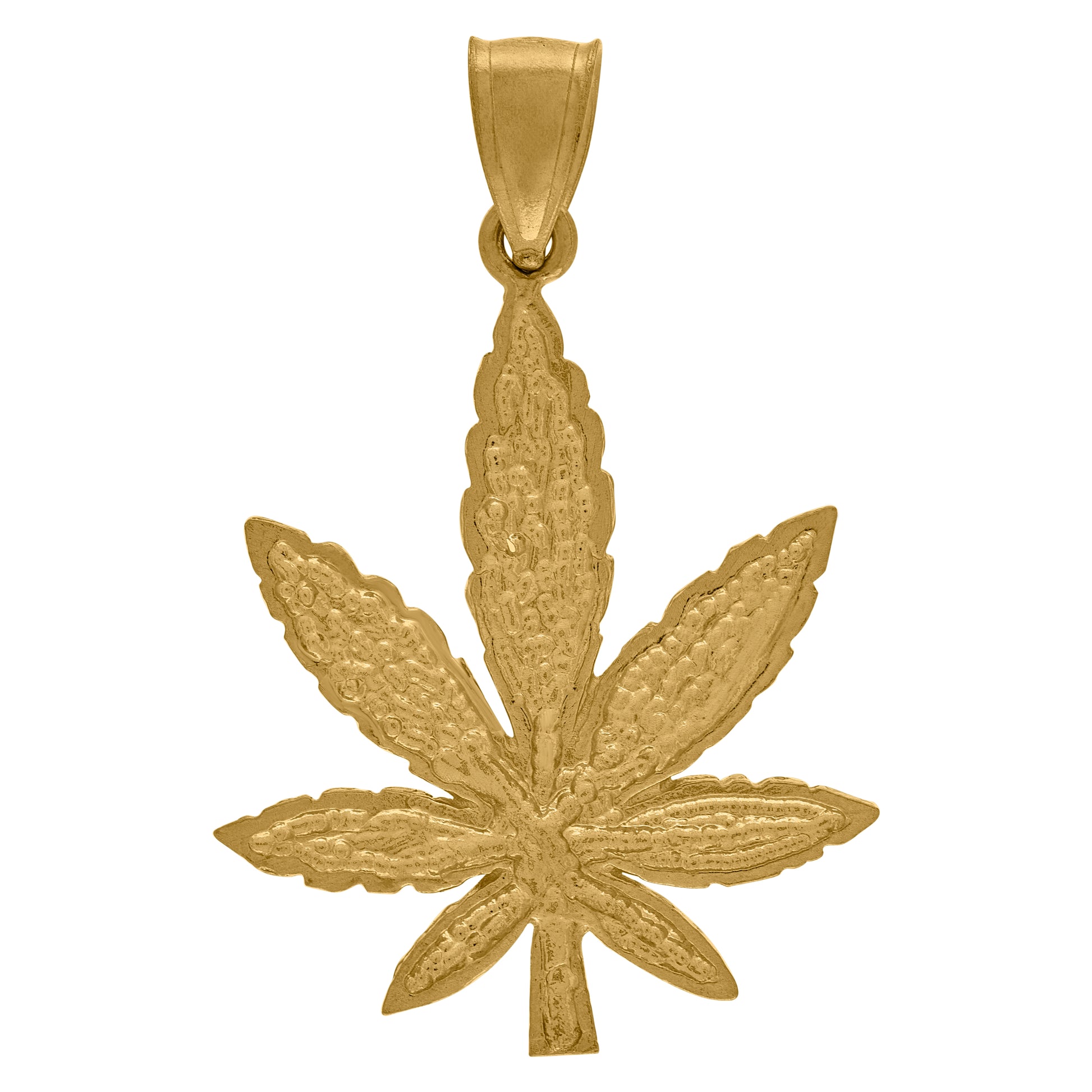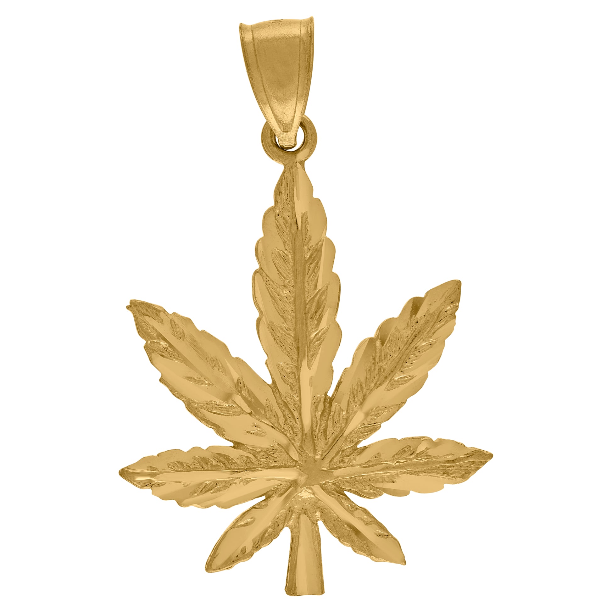 10kt Yellow Gold Mens Diamond-Cut Textured Marijuana Leaf Charm Pendant