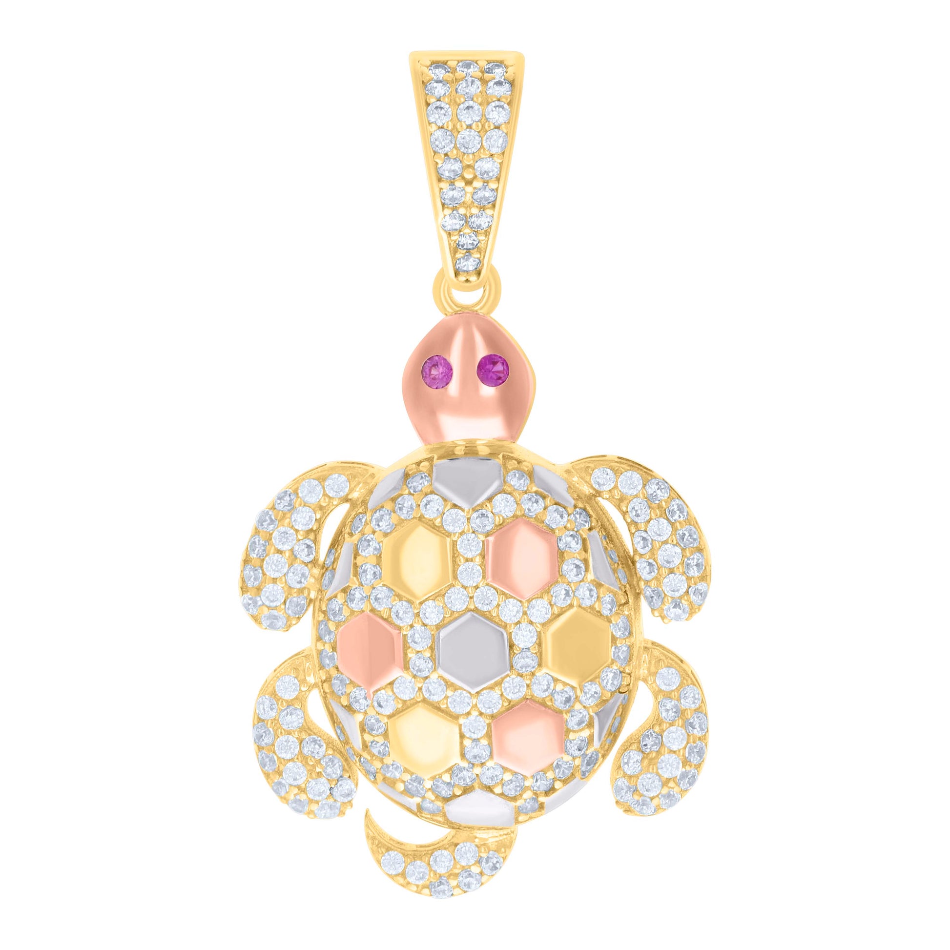 10kt Tri-Color Gold Mens Purple White Cubic-Zirconia Turtle Animal Ocean Charm Pendant