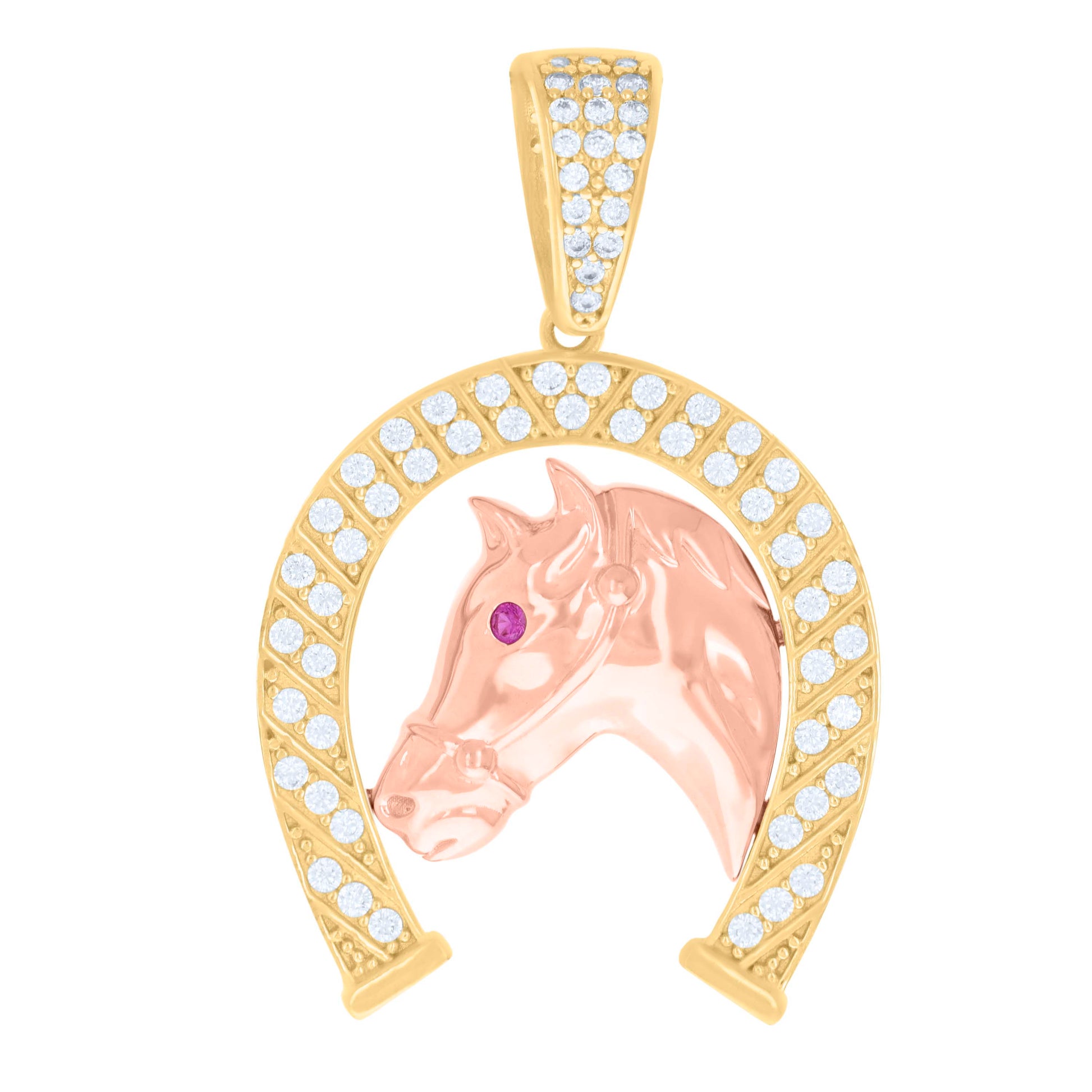 10kt Two-tone Gold Mens Purple White Cubic-Zirconia Horse Head Horseshoe Good Luck Charm Pendant