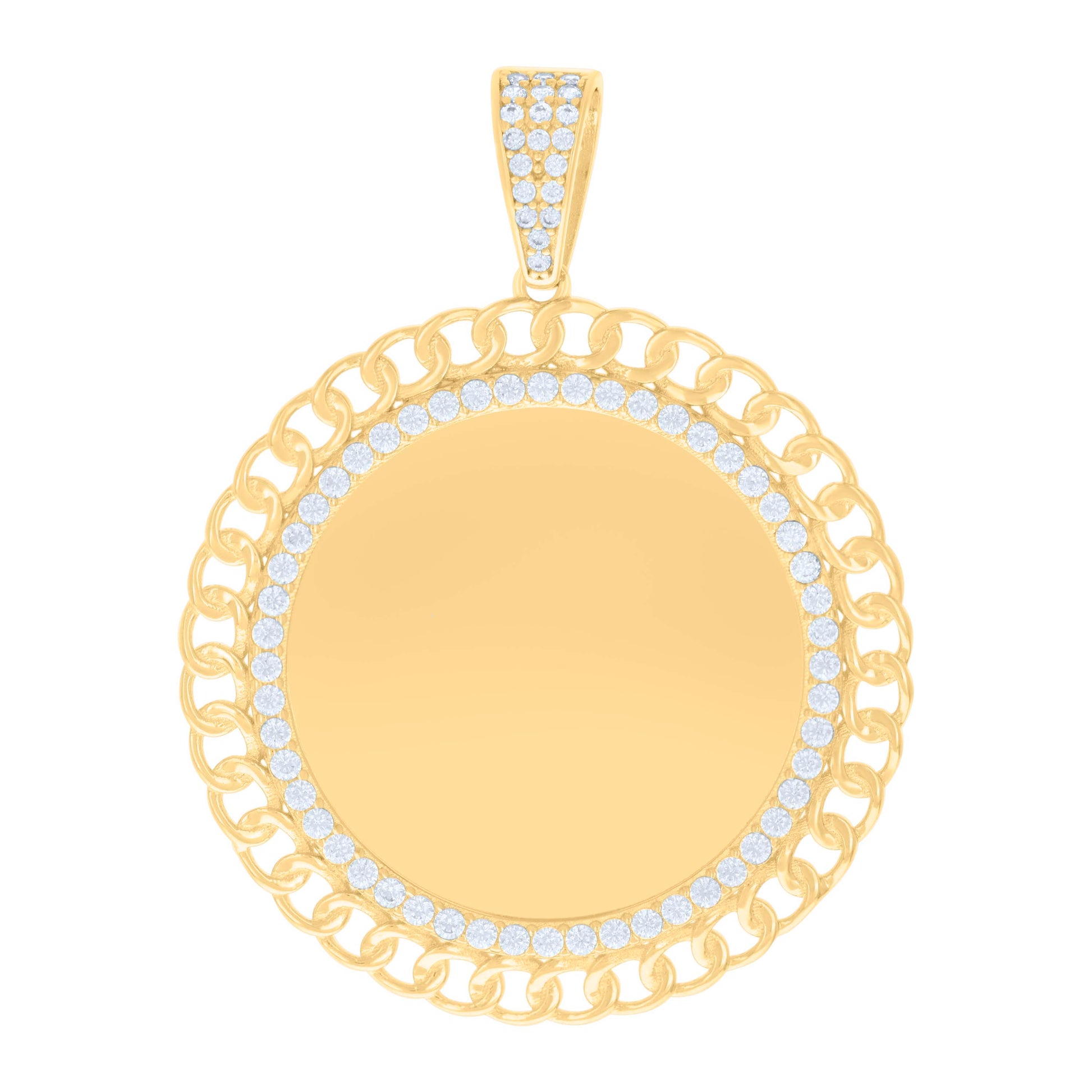 10kt Yellow Gold Mens Cubic-Zirconia Cuban Border Round Photo Frame Charm Pendant