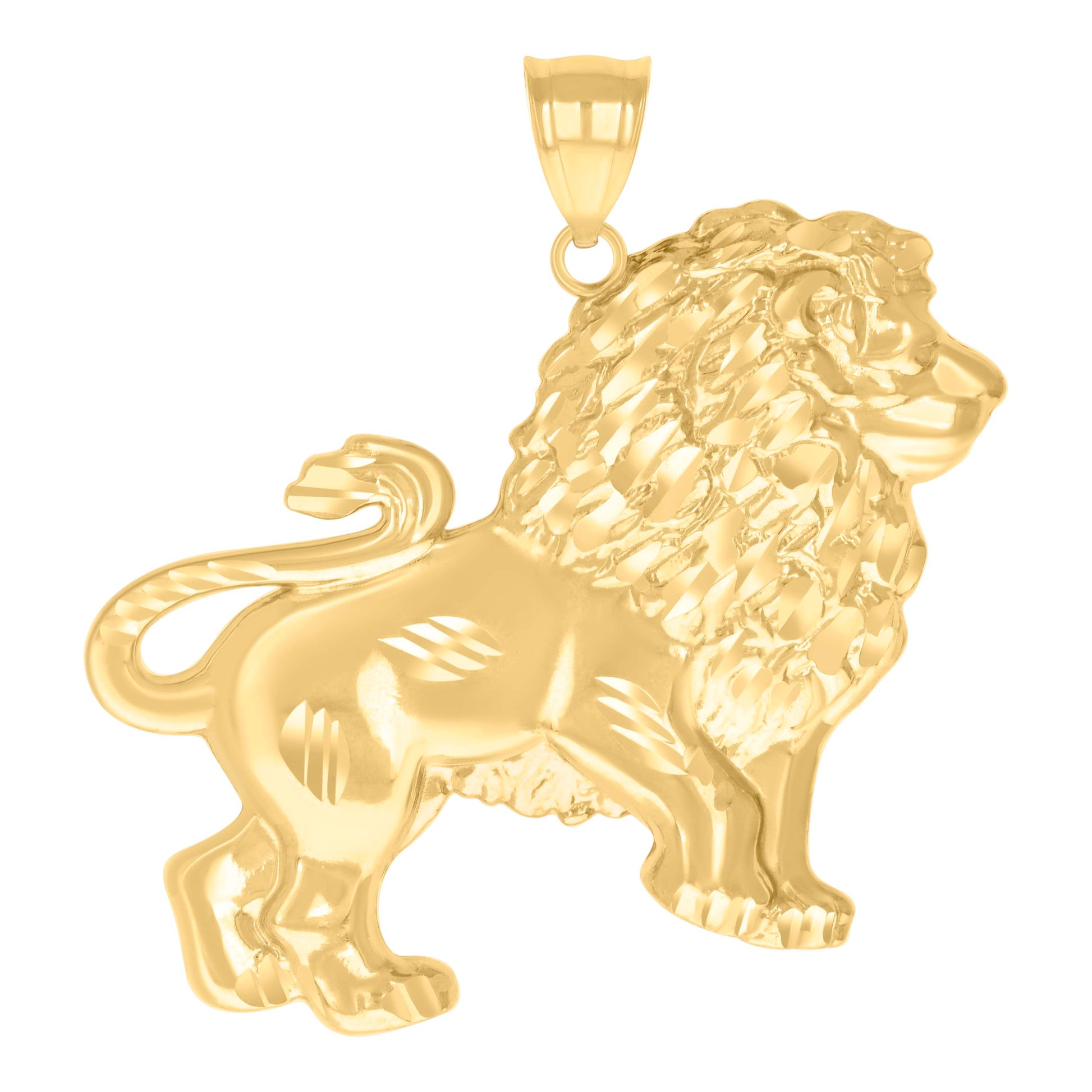 10kt Yellow Gold Mens Lion Animal Wildlife Charm Pendant