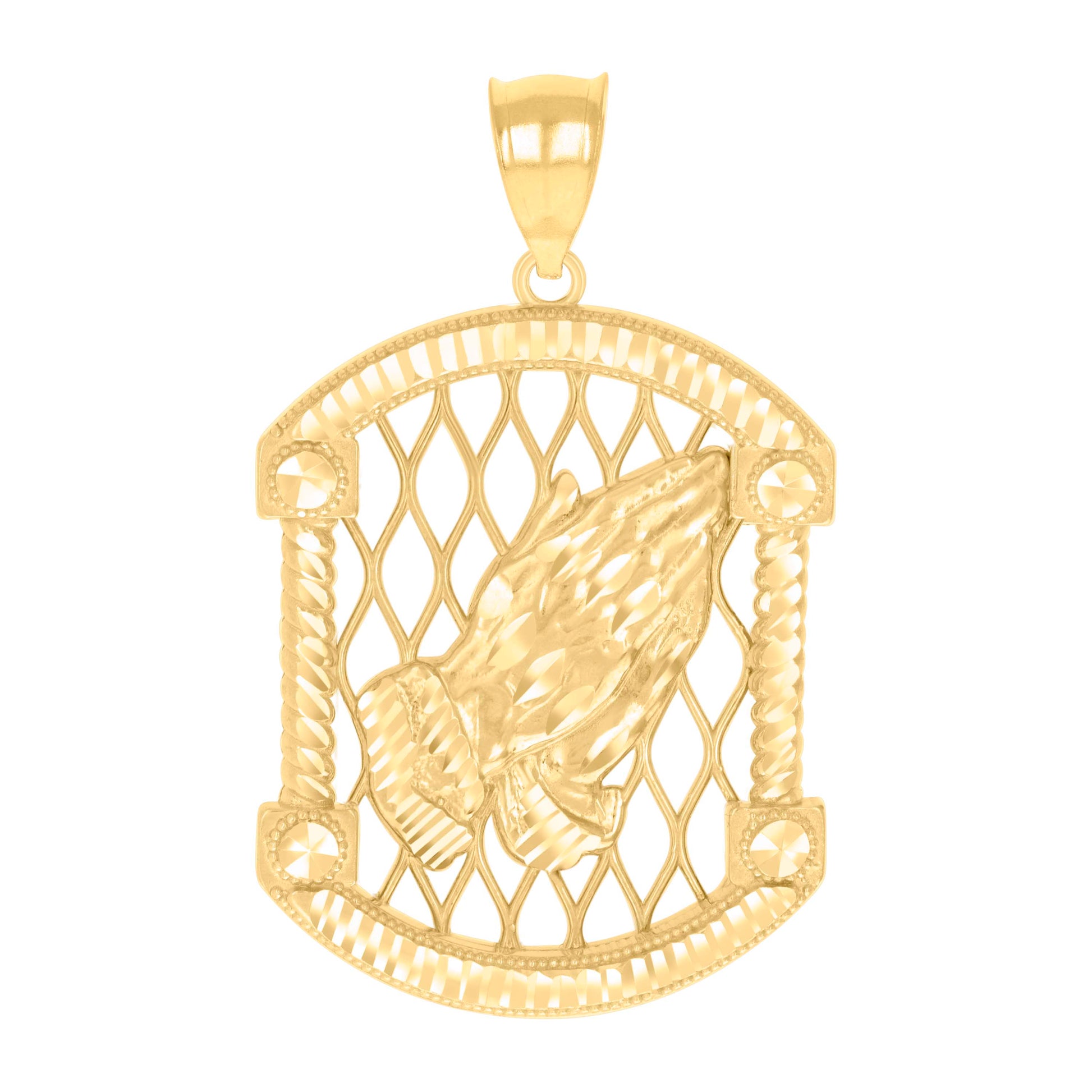 10kt Yellow Gold Mens Praying Hands Symbol Religious Charm Pendant