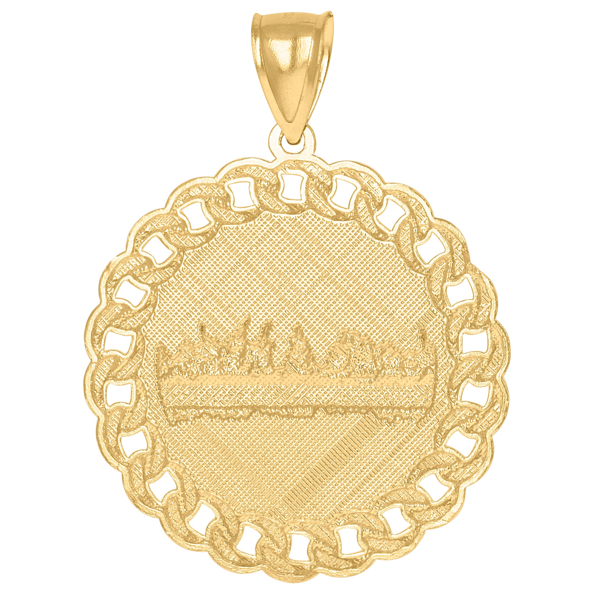 10kt Gold Two-Tone Mens Last Supper Religious Cuban Link Medallion Charm Pendant