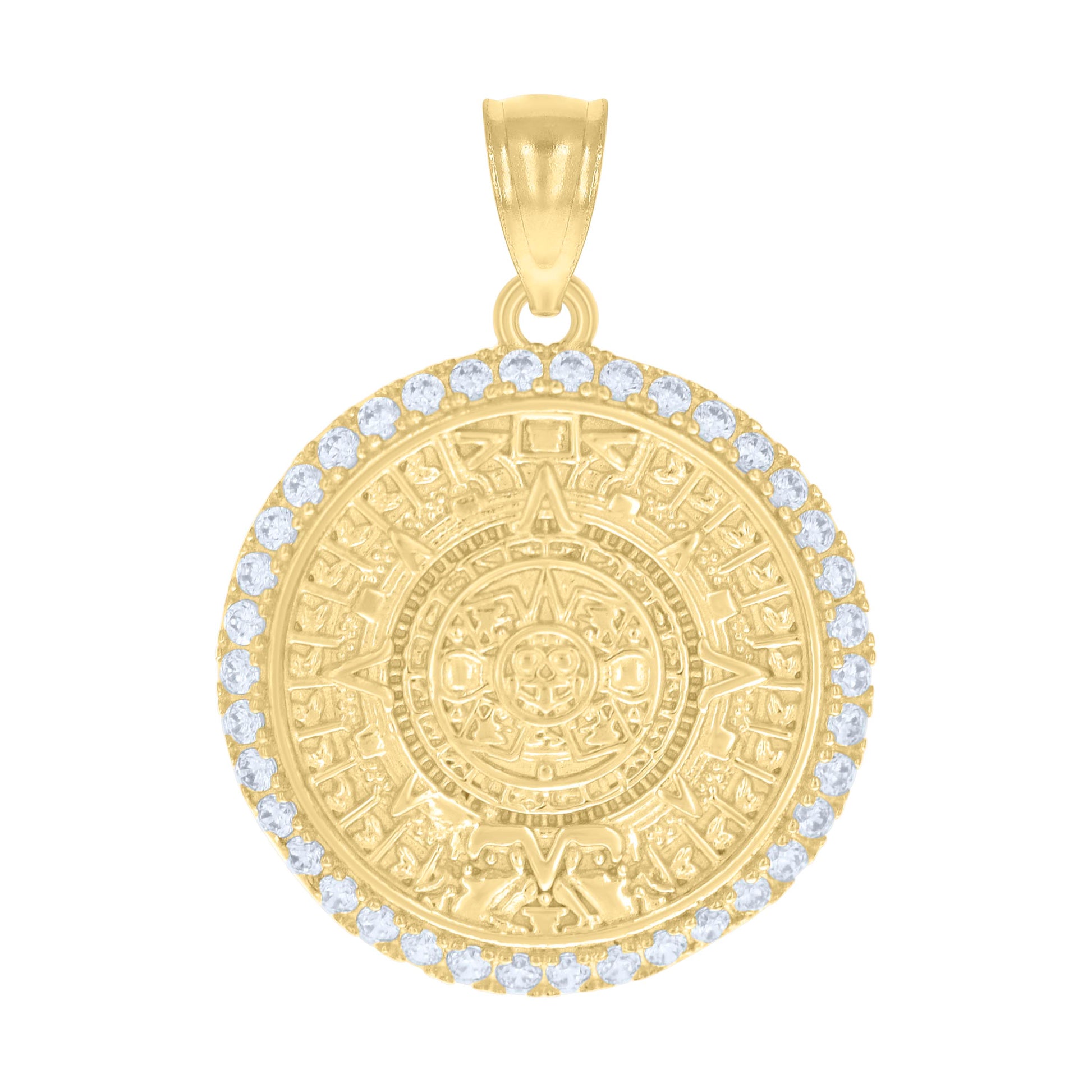 10kt Yellow Gold Mens Cubic-Zirconia Aztec Calendar Fashion Charm Pendant