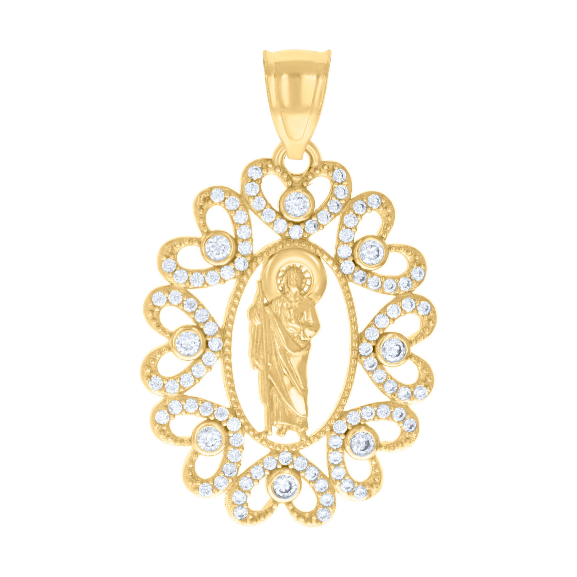 10kt Yellow Gold Mens Cubic-Zirconia St. Jude Religious Charm Pendant
