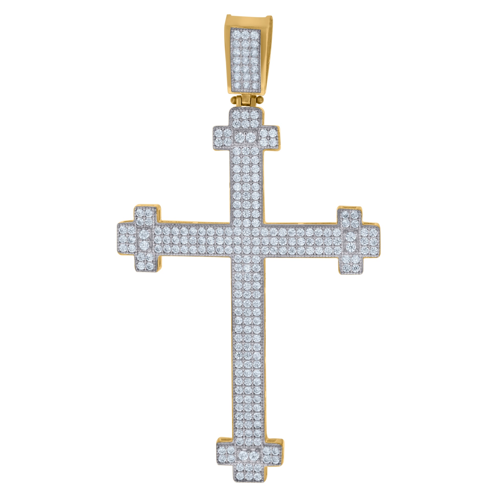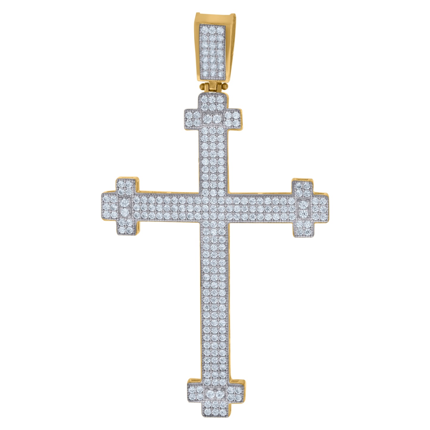 10kt Two-tone Gold Mens Cubic-Zirconia Cross Religious Charm Pendant