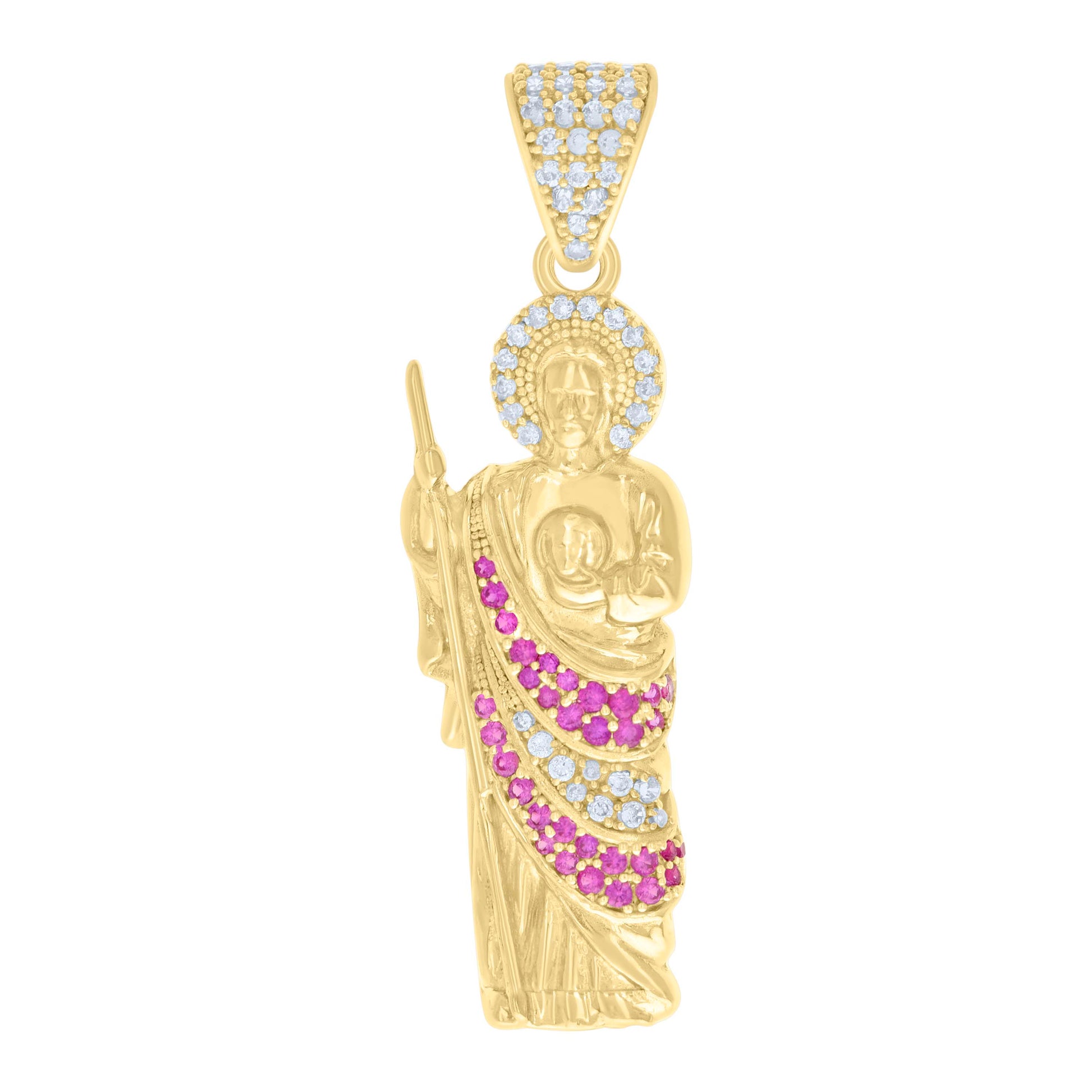 10kt Yellow Gold Mens Pink White Cubic-Zirconia St. Jude Religious Charm Pendant