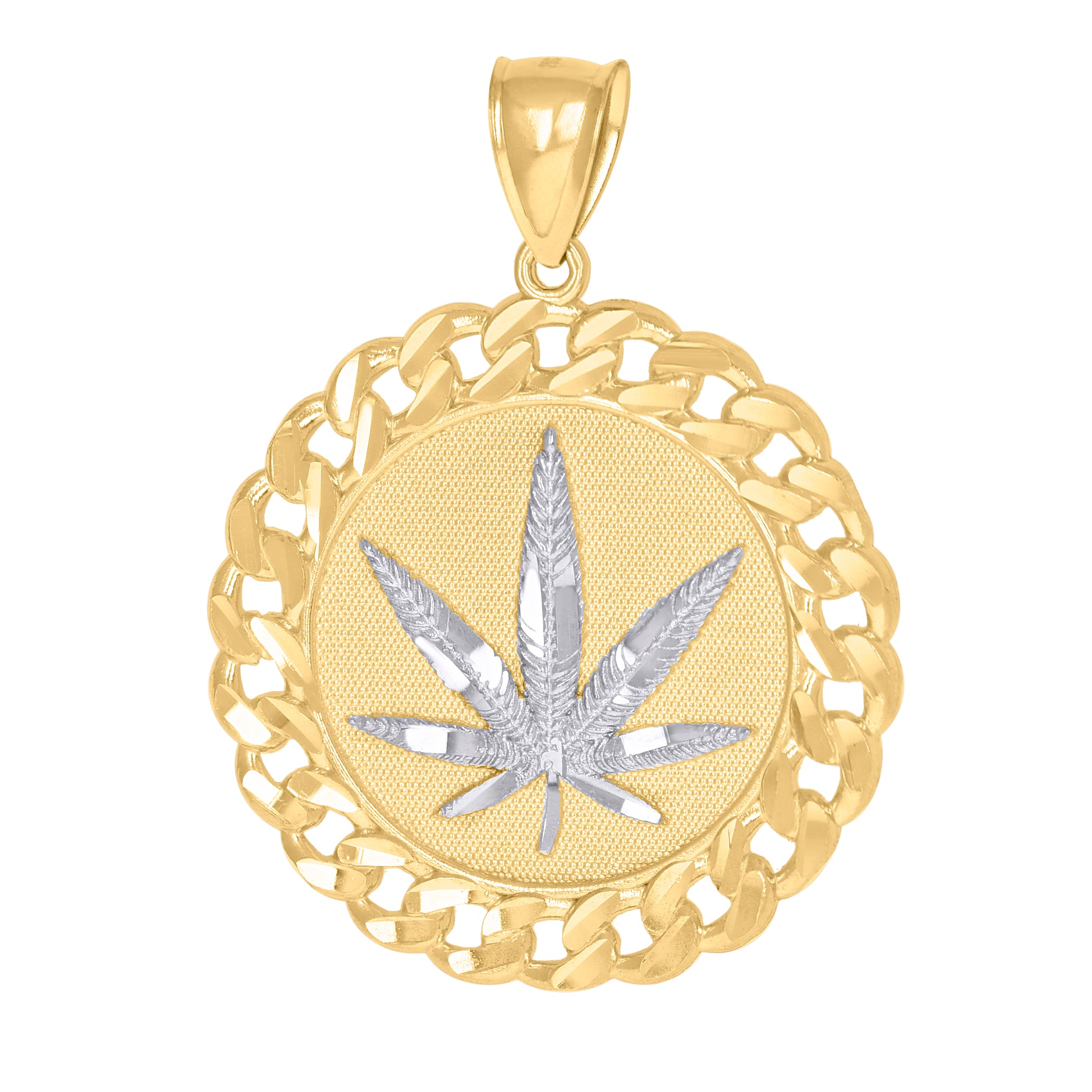 10kt Gold Two-Tone Diamond-Cut Mens Marijuana Leaf Medallion Charm Pendant
