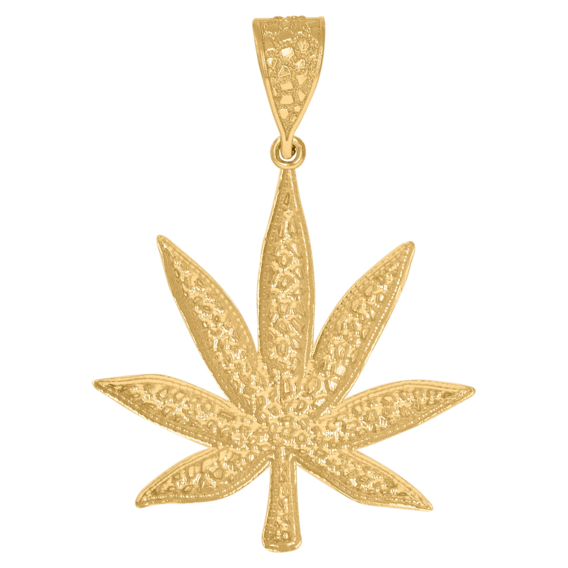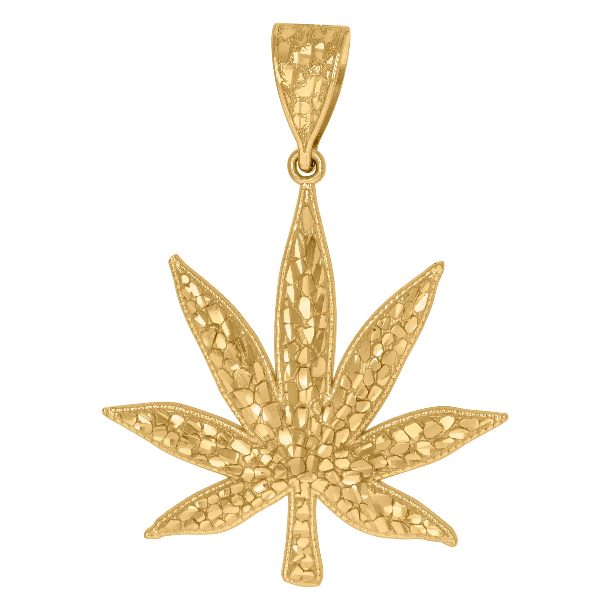 10kt Yellow Gold Diamond-Cut Mens Marijuana Leaf Charm Pendant