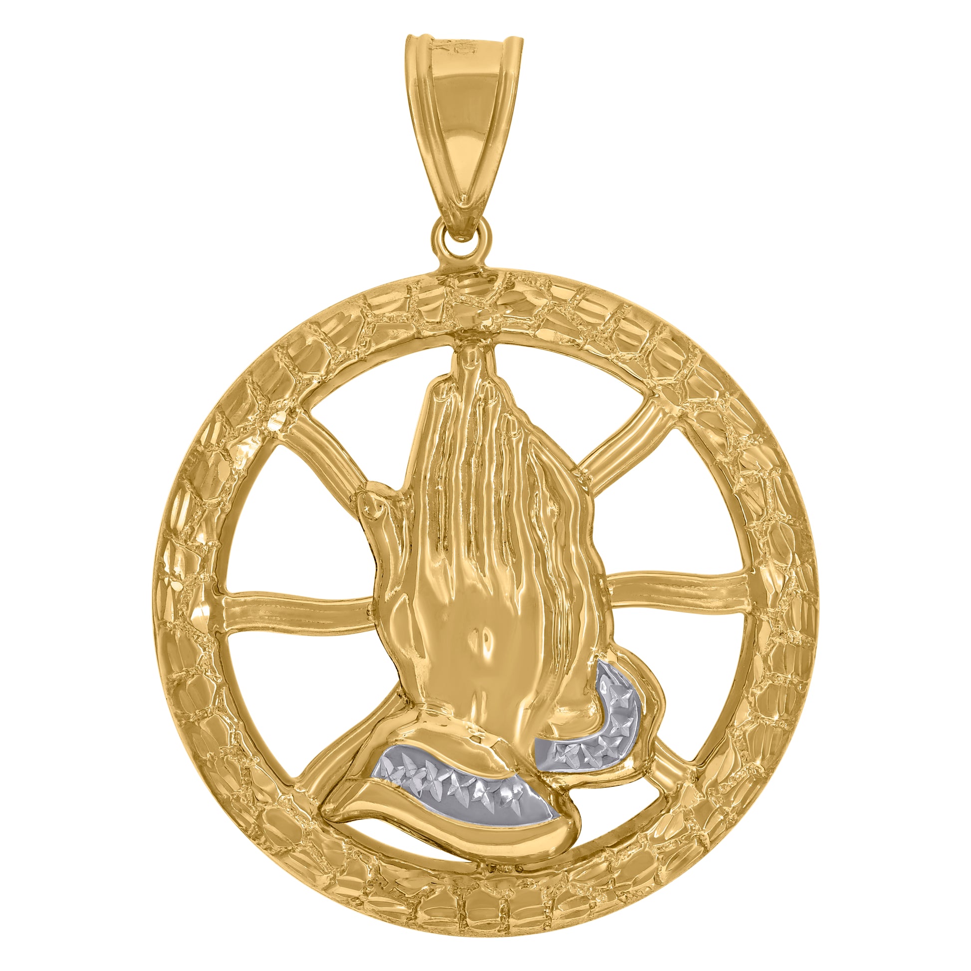 10kt Two-Tone Gold Mens Religious Praying Hands Medallion Charm Pendant