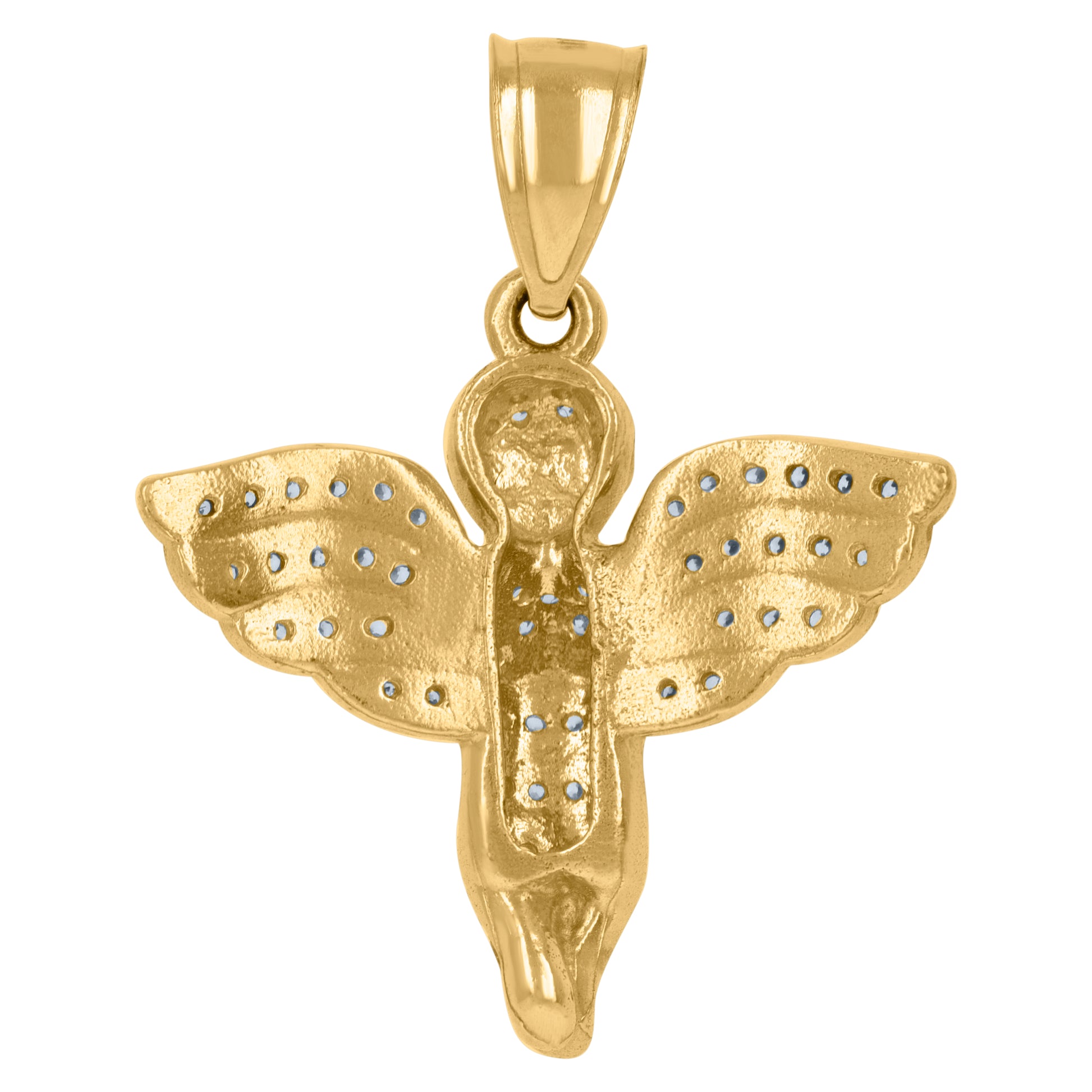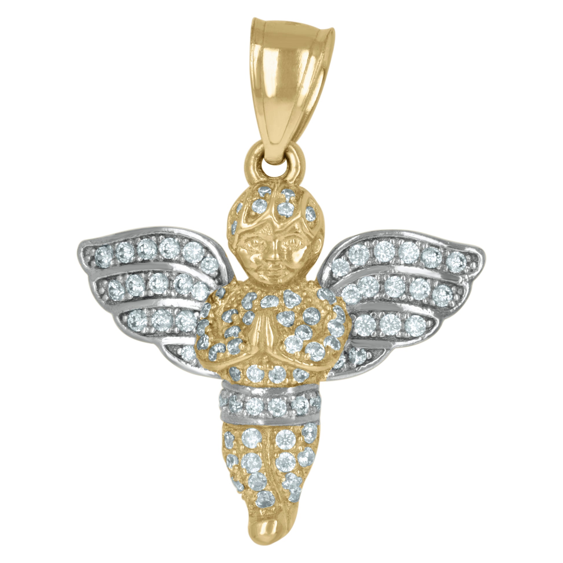 10kt Yellow Gold Cubic-Zirconia Mens Praying Angel Religious Charm Pendant