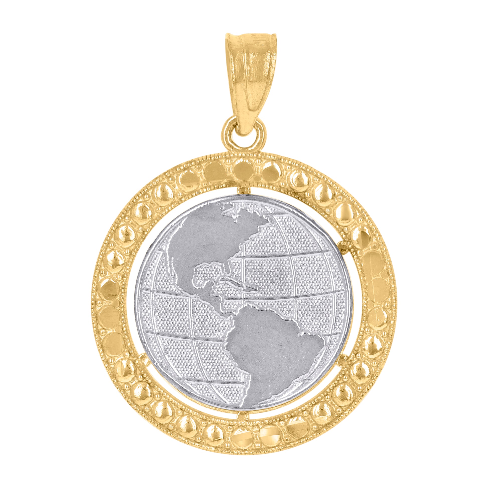 10kt Two-Tone Gold Mens Women Textured Globe Charm Pendant