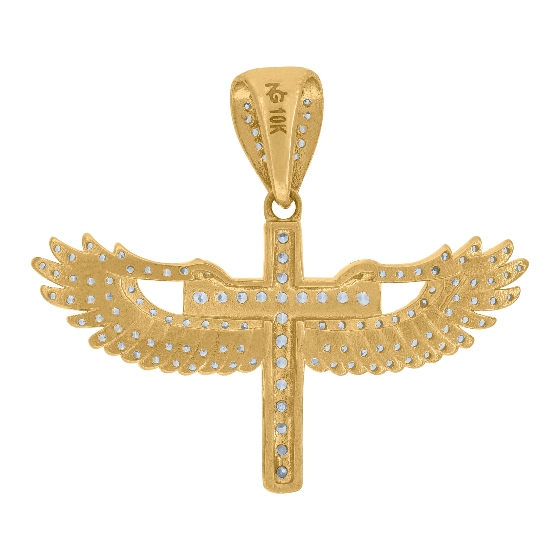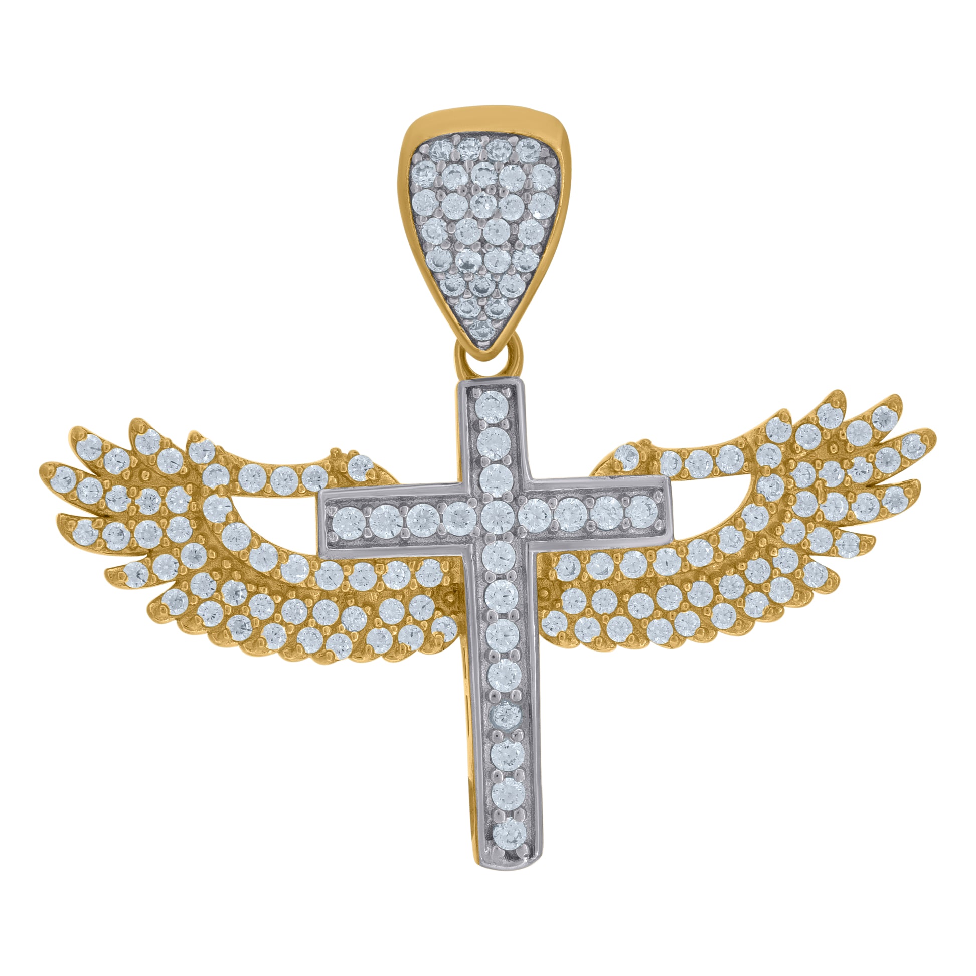 10kt Two-Tone Gold Cubic Zirconia Angel Wings Cross Religious Charm Pendant