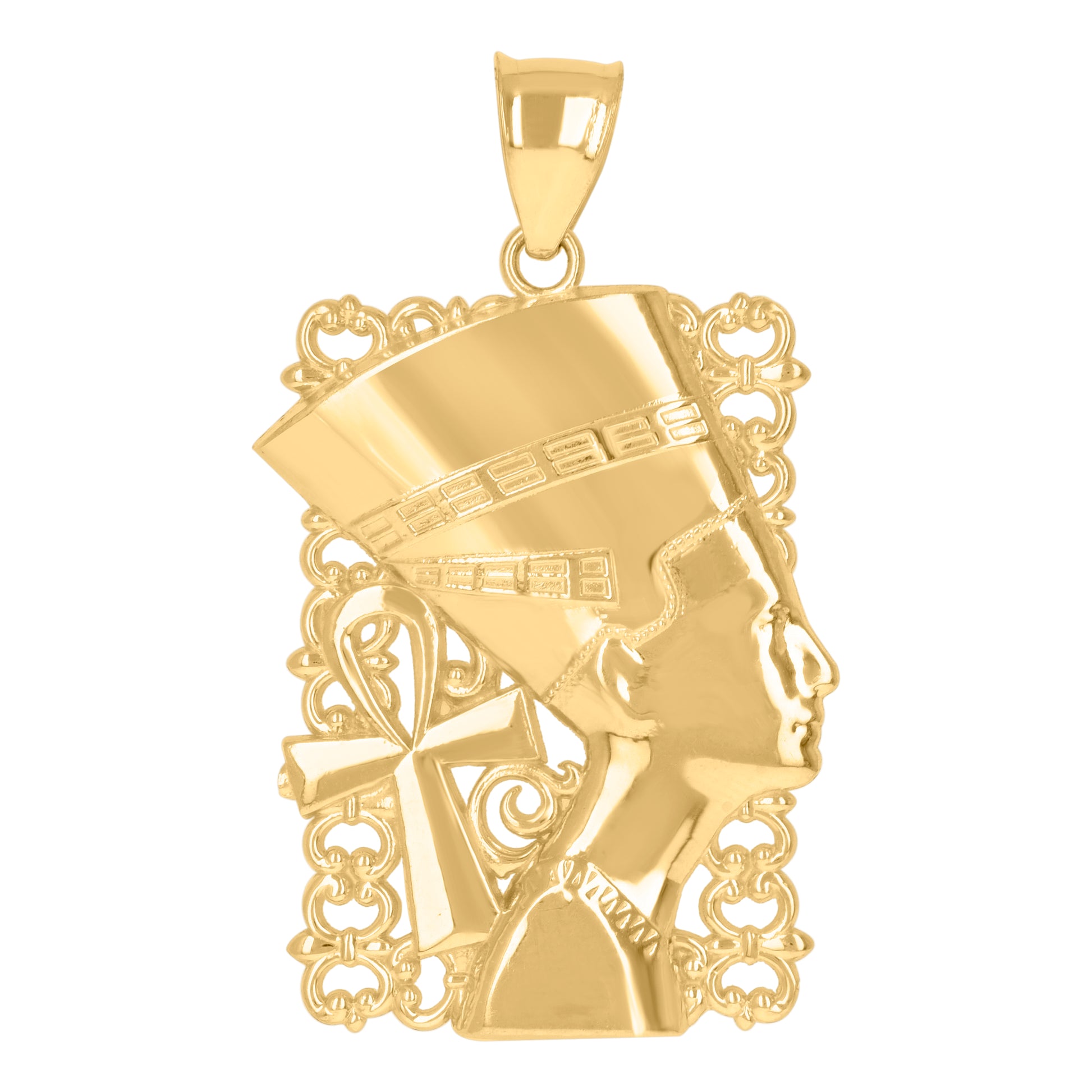 10kt Yellow Gold Mens Egyptian Nefertiti Ankh Charm Pendant