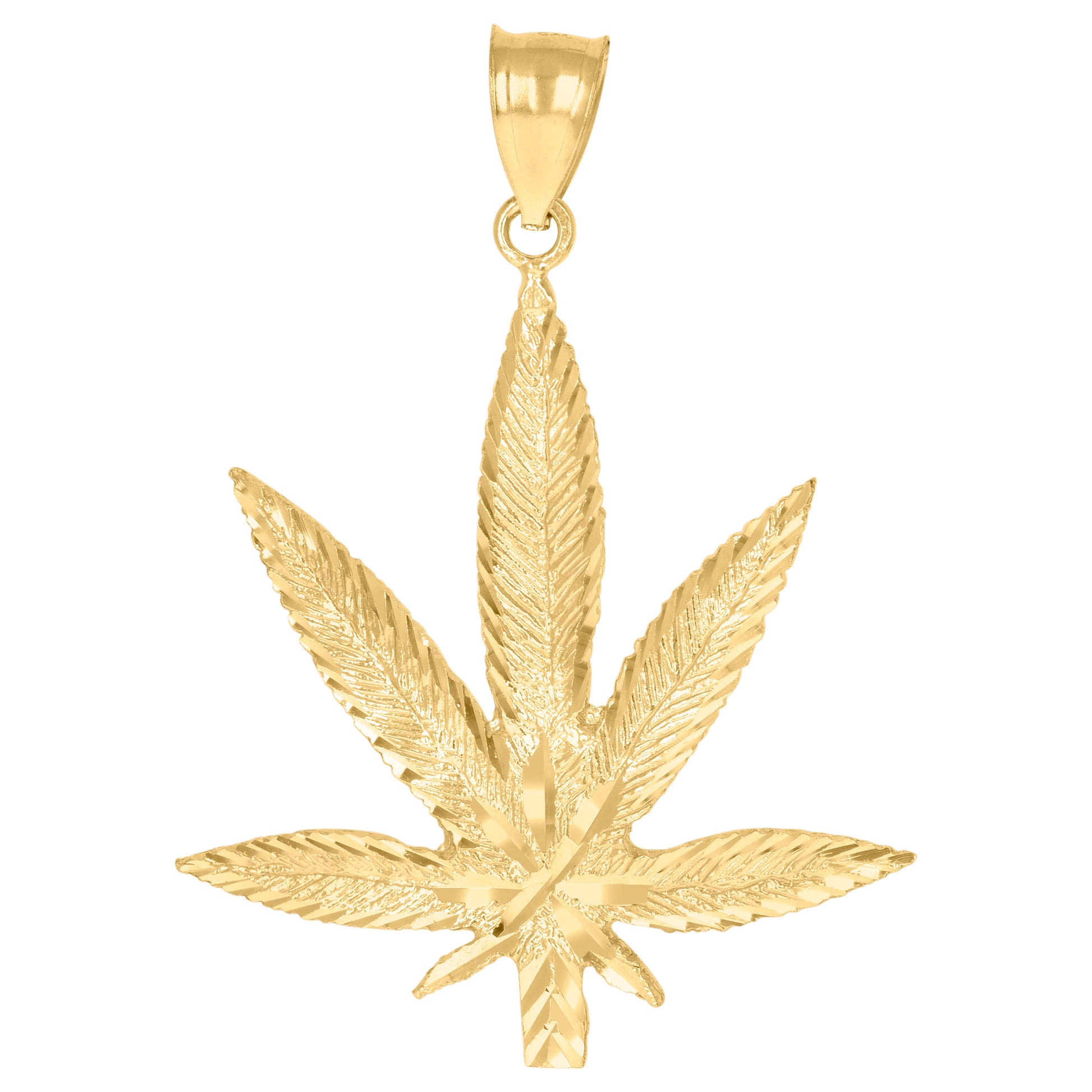 10kt Yellow Gold Mens Fashion Marijuana Leaf Charm Pendant