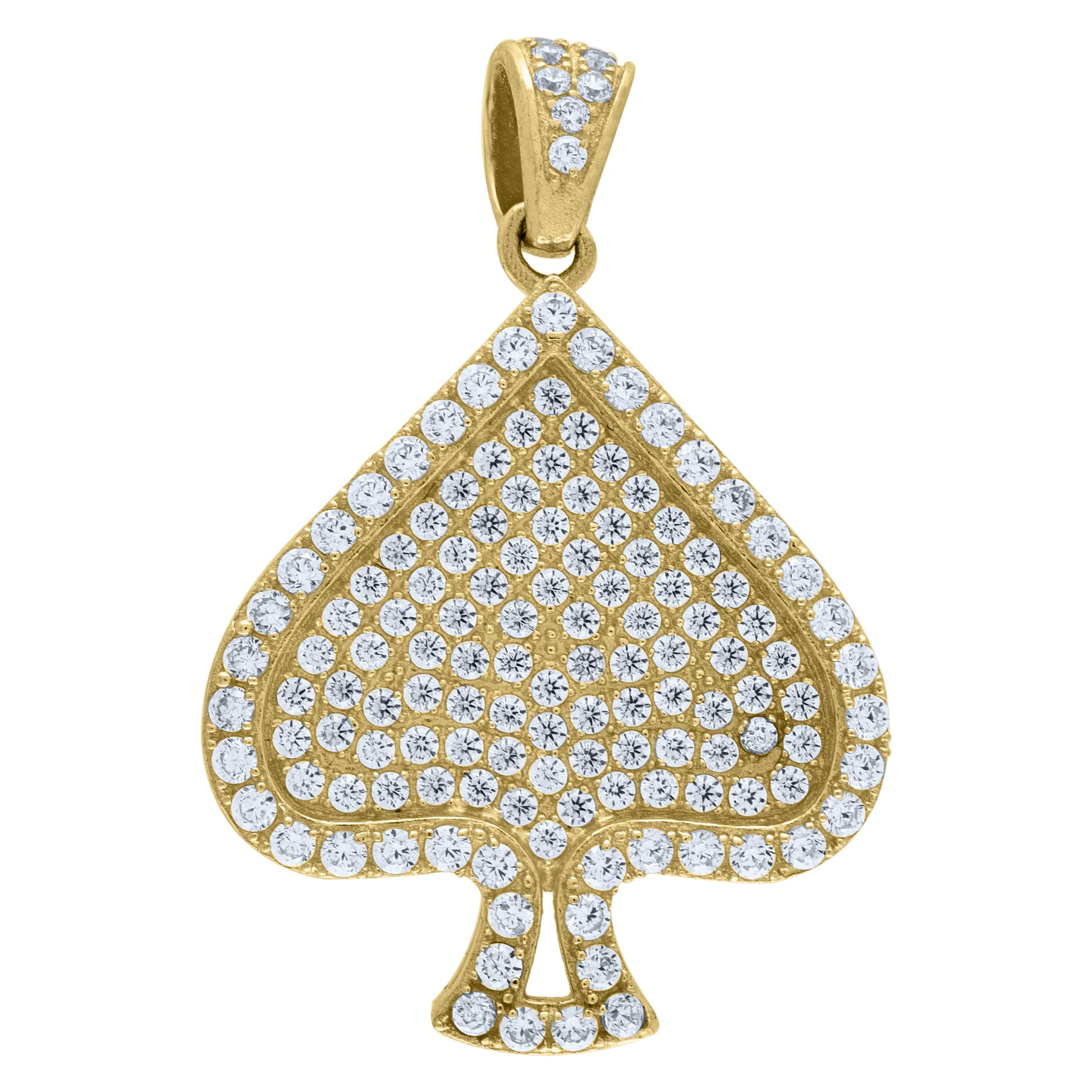10kt Yellow Gold Mens Cubic Zirconia Royal Flush Cards Spade Charm Pendant