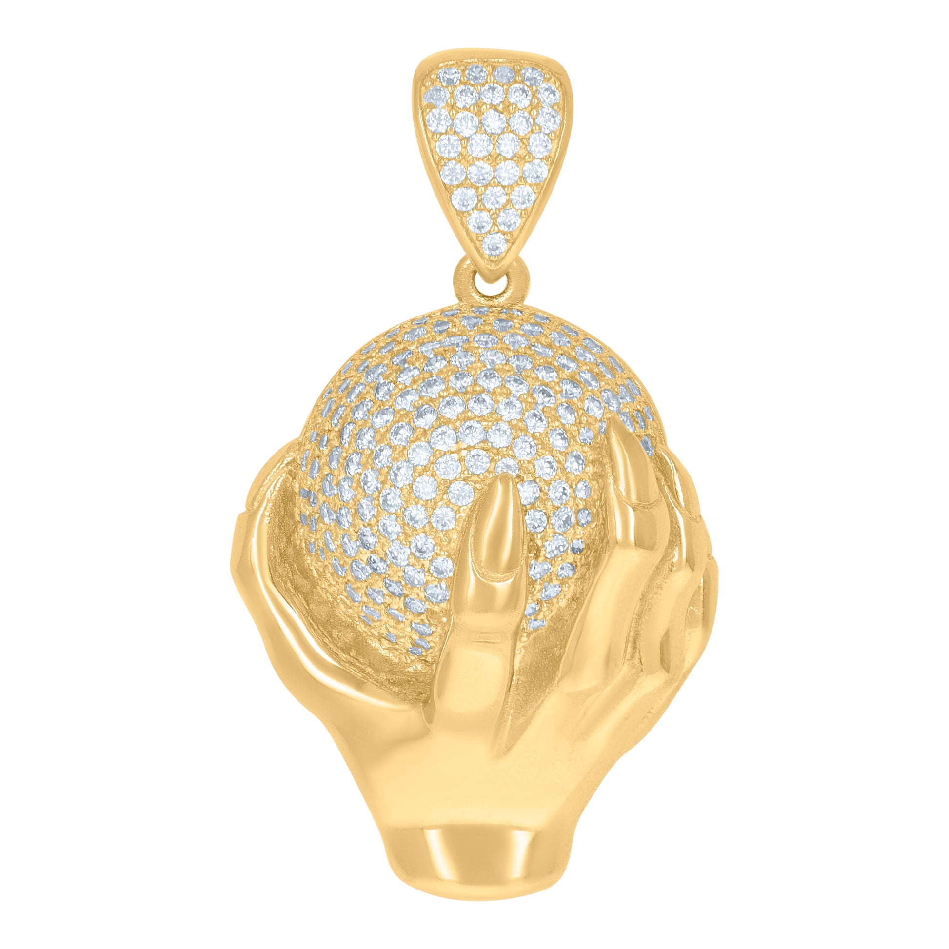 10kt Yellow Gold Cubic-Zirconia Unisex Hand Globe Charm Pendant