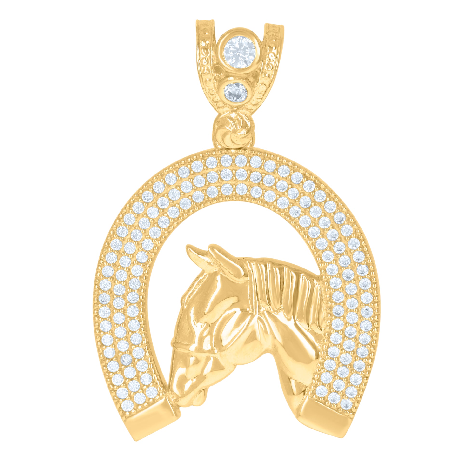 10kt Yellow Gold Mens Cubic-Zirconia Good Luck Horseshoe Horse Head Charm Pendant